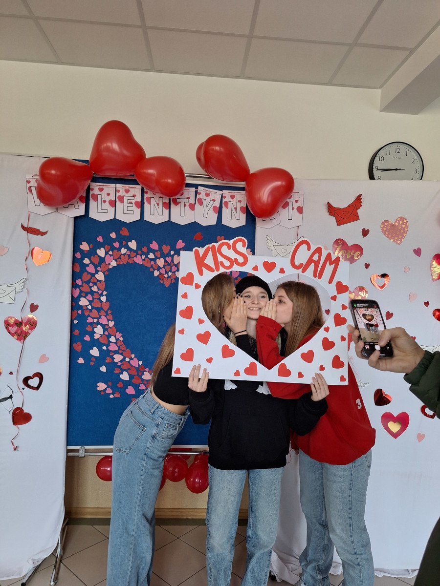 Z okazji Walentynek Samorząd Uczniowski ZSBIO przygotował wiele atrakcji. Największym powodzeniem cieszyła się ścianka do zdjęć oraz ramka Kiss Cam, z którą uczniowie i nauczyciele chętnie robili sobie wspólne zdjęcia.