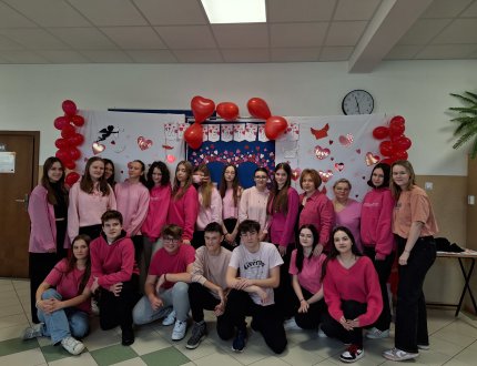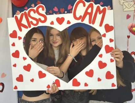 2024-02-21 Walentynki 2024 Z okazji Walentynek Samorząd Uczniowski ZSBIO przygotował wiele atrakcji. Największym powodzeniem cieszyła się ścianka do zdjęć oraz ramka Kiss Cam, z którą uczniowie i nauczyciele chętnie robili sobie wspólne zdjęcia.