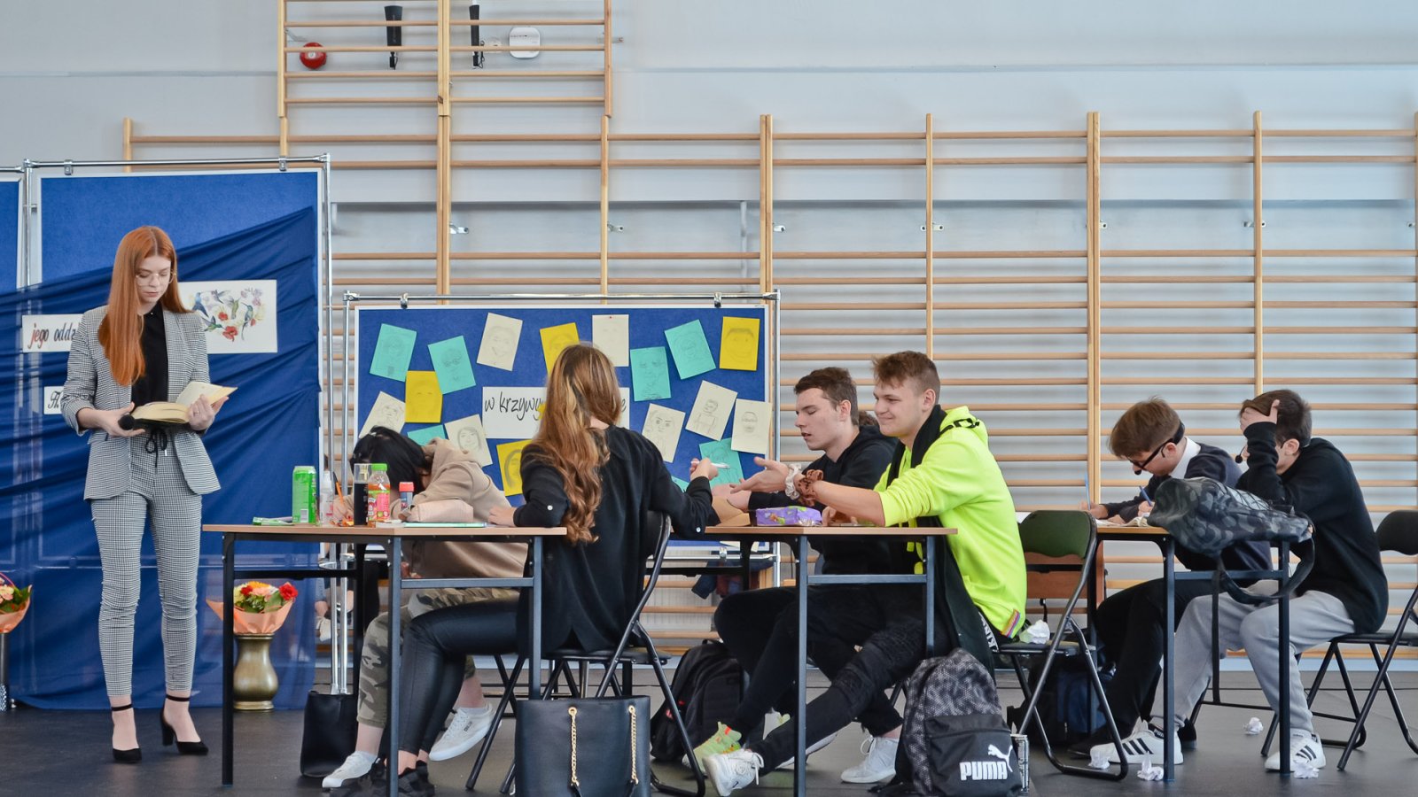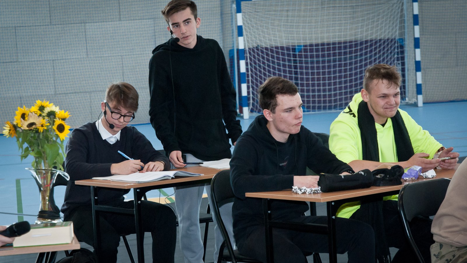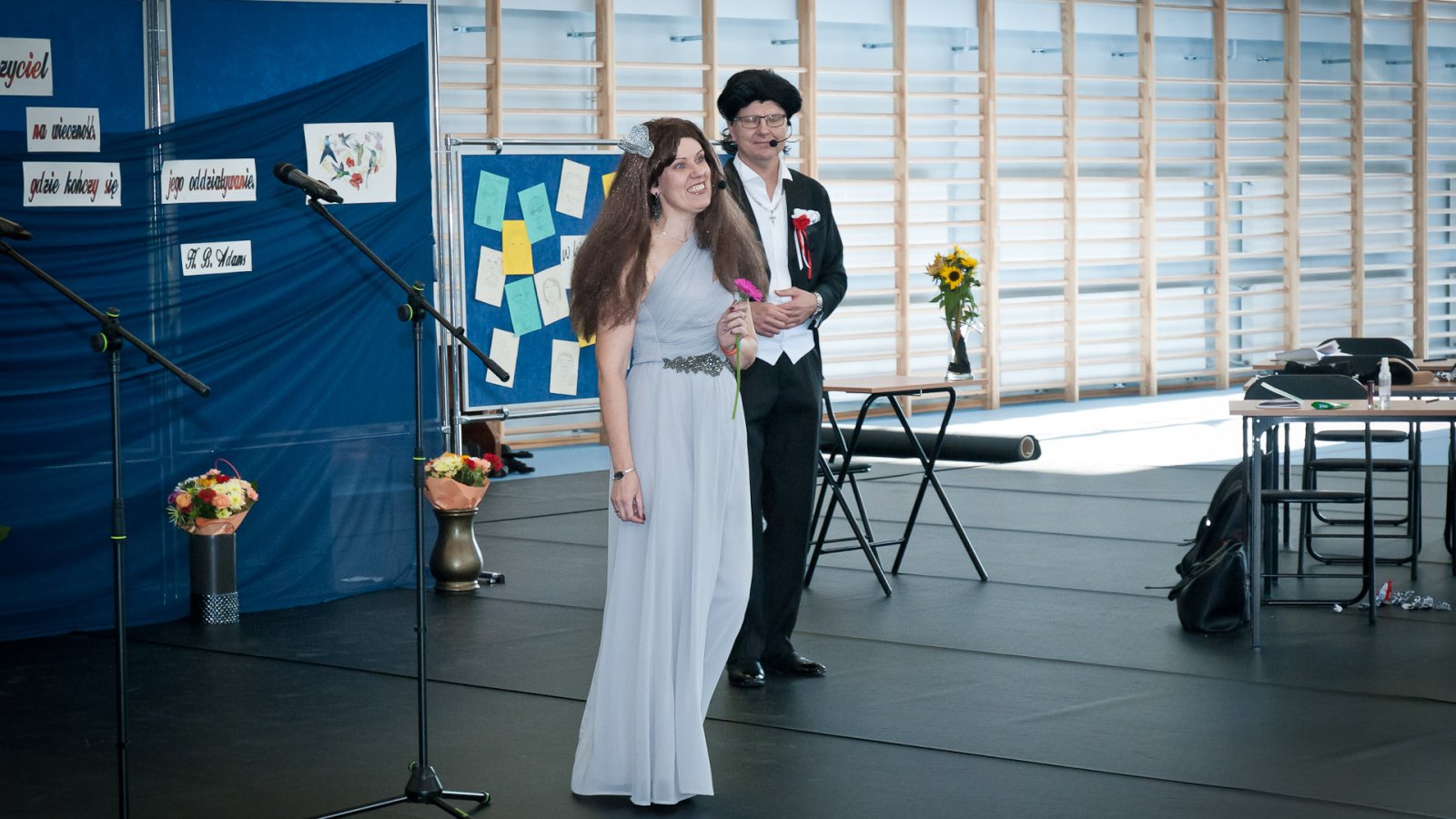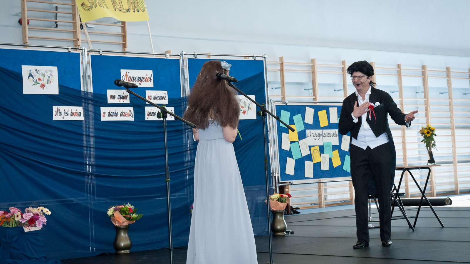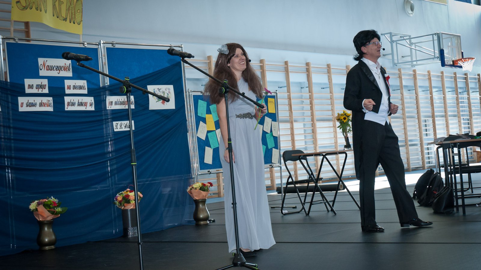 W hali sportowej zebrali się wszyscy uczniowie, dyrekcja, nauczyciele oraz zaproszeni goście. Życzenia wszystkim nauczycielom złożył dyrektor pan Stanisław Sitarz, starosta biłgorajski pan Andrzej Szarlip oraz przewodniczący Samorządu Uczniowskiego Bartłomiej Kaczor. Następnie wszyscy zebrani obejrzeli część artystyczną przygotowaną przez uczniów i nauczycieli.