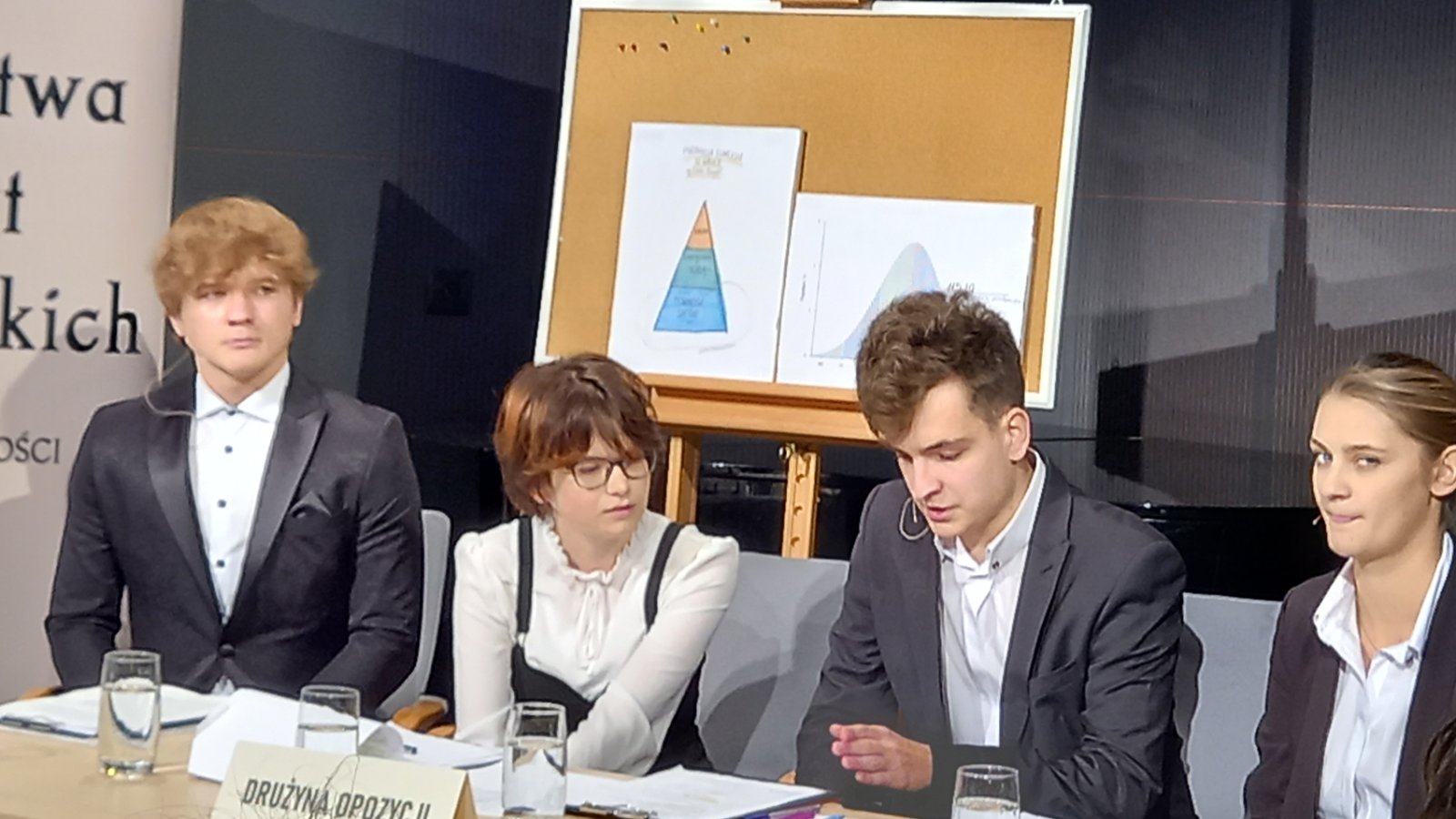 Temat naszego starcia z uczniami RCEZ brzmiał: „Bez korepetycji nie można zostać prymusem.” Teza została mistrzowsko obalona przez drużynę naszej szkoły. Dzięki ciężkiej pracy i motywacji nasza drużyna zwyciężyła i tym samym dostaliśmy się do finału w którym zmierzymy się z uczniami ONZ. W drugim etapie będziemy bronić tezy „We współczesnym świecie narracja jest ważniejsza niż fakty.”