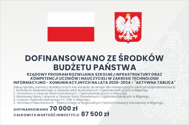 W ramach zadania dofinansowanie otrzymały następujące szkoły ponadpodstawowe, dla których organem prowadzącym jest Powiat Biłgorajski: