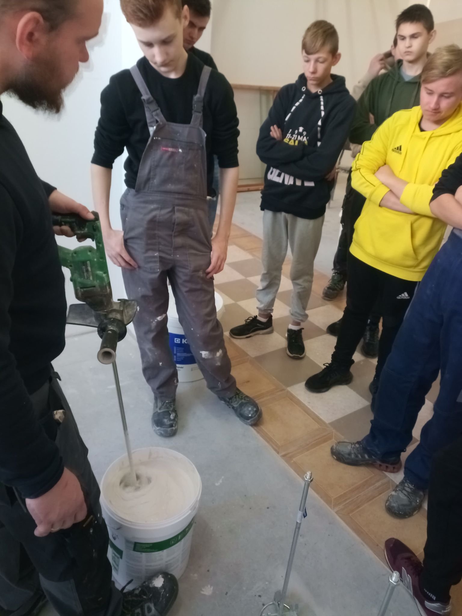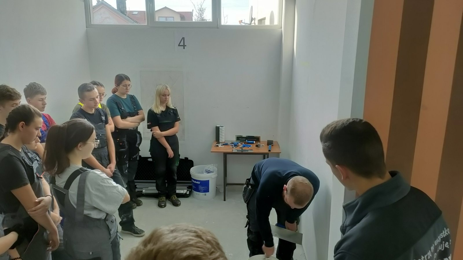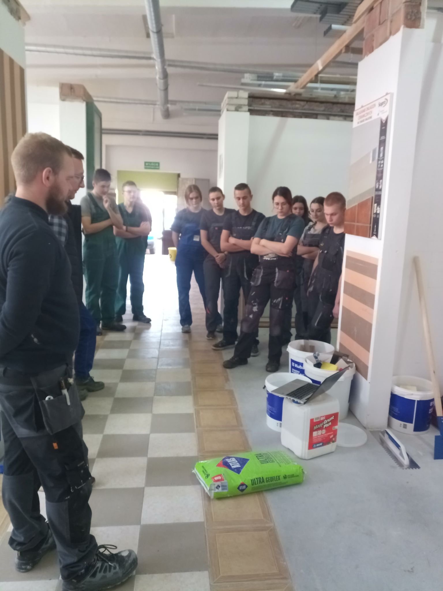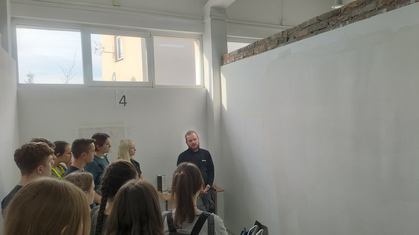 Uczestnikami szkolenia byli uczniowie klasy IIb Szkoły Branżowej, klasy II Technikum Budowlanego oraz nauczyciele praktycznej nauki zawodu.