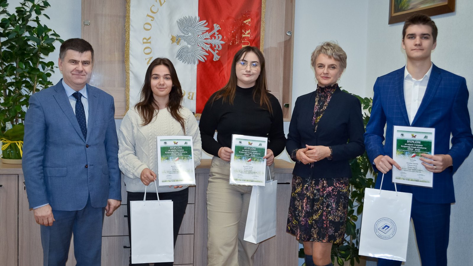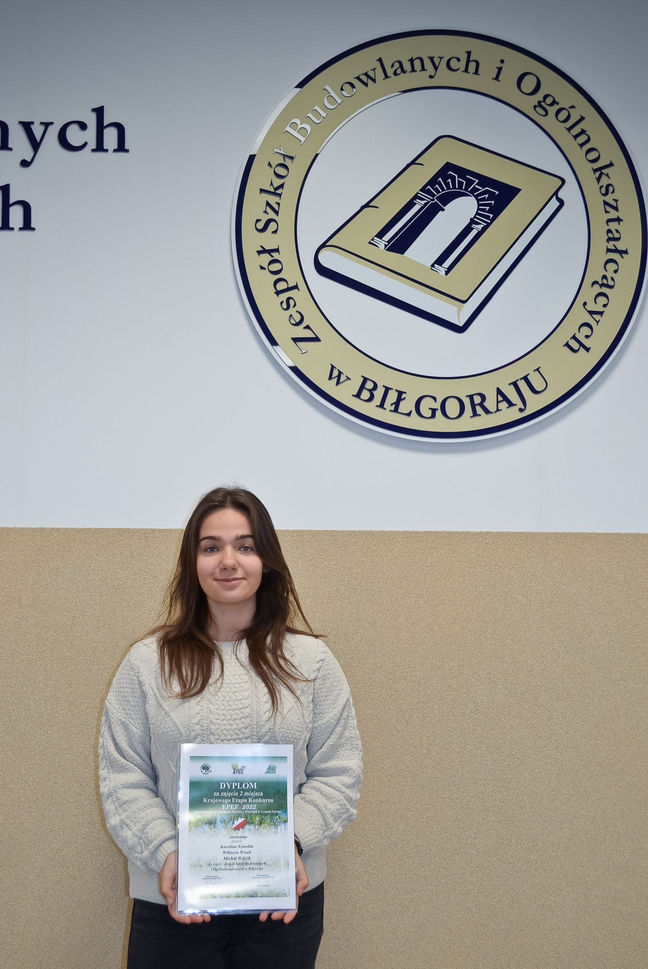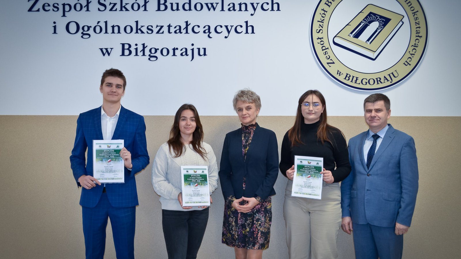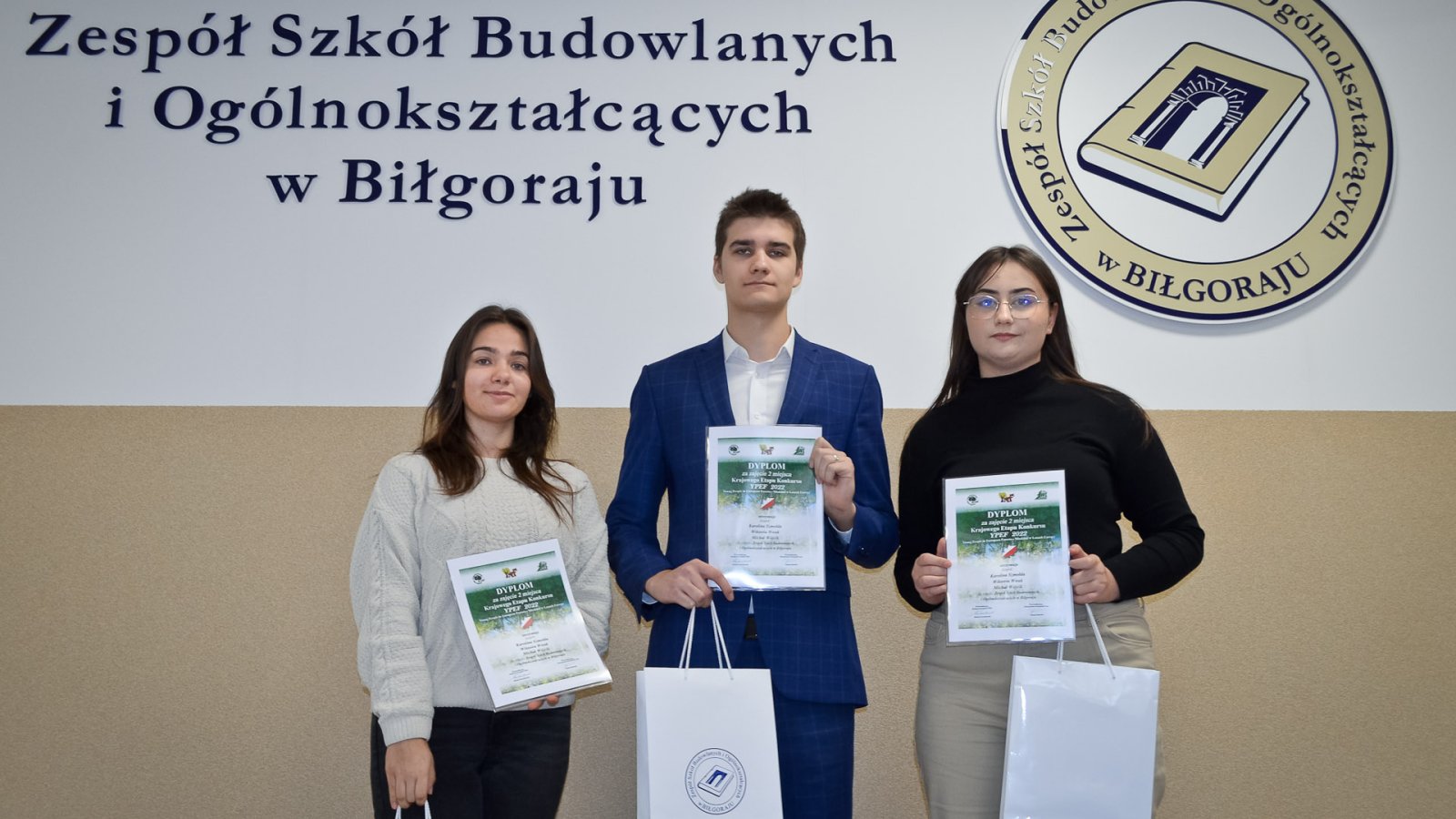 1. Wiktoria Wnuk (IVc), Karolina Szmołda (IVc) i Michał Wójcik (IVbTB), 2 miejsce w Polsce, oraz