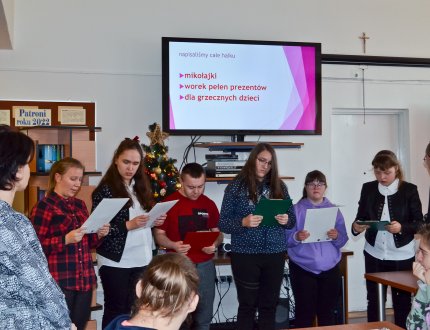 2022-12-08 Spotkanie z poezją w szkolnej bibliotece W czwartek 8 grudnia naszą szkołę odwiedzili uczniowie z Zespołu Szkół Specjalnych w Biłgoraju. -