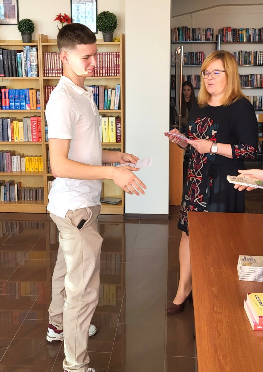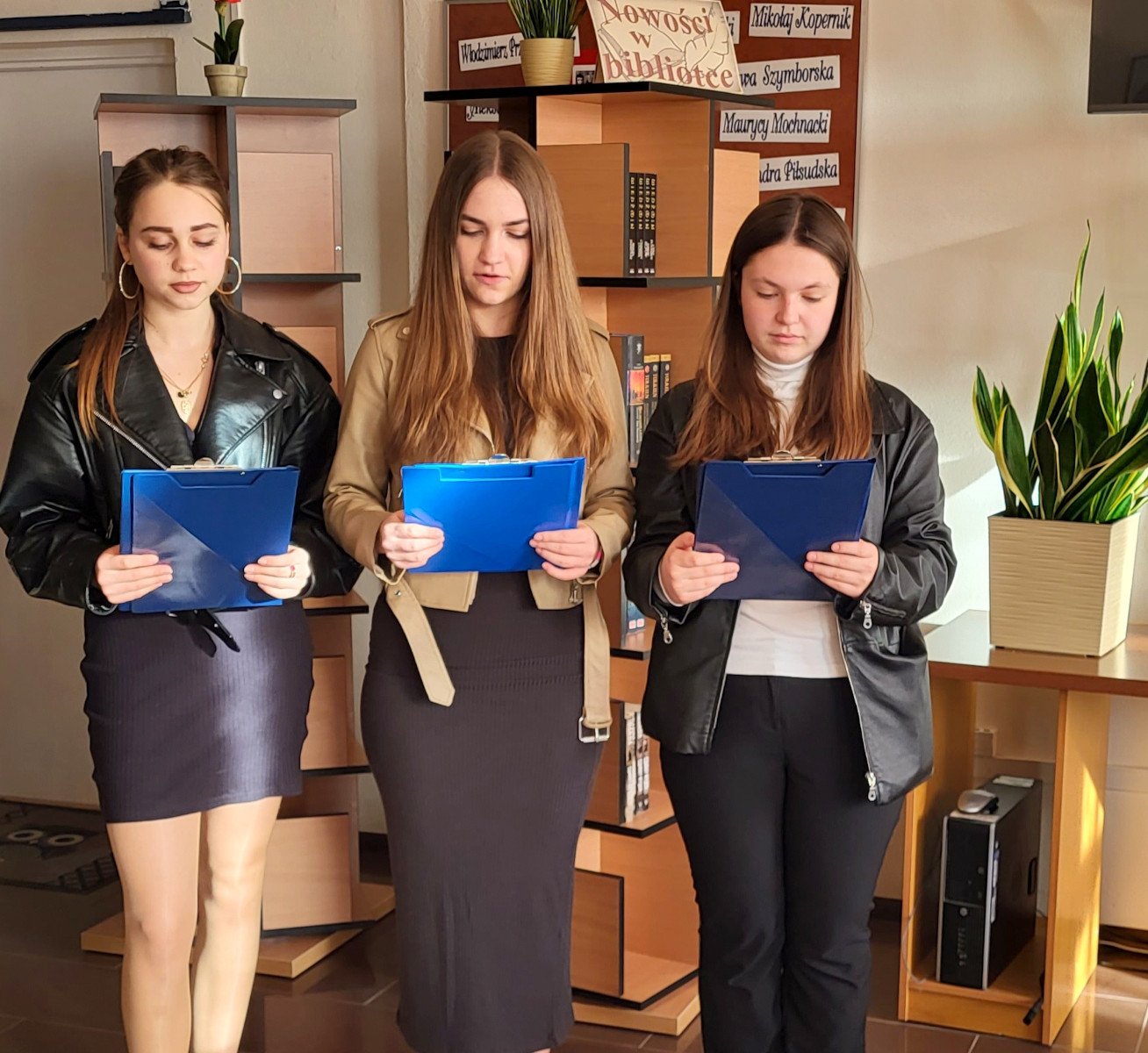 Jury w składzie: pani dyrektor Anna Kraczowska, pani Dorota Szymanik-Duras i pani Katarzyna Kowalska-Bazan tytuł laureata przyznało Zuzannie Cios z klasy Ia LO i Emilii Oszmaniec z klasy Ib LO. Wyróżnione uczennice będą reprezentować naszą szkołę na Powiatowym Konkursie Pięknego Czytania, który odbędzie się 30 listopada 2023 r. w bibliotece szkolnej.