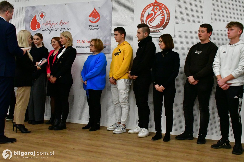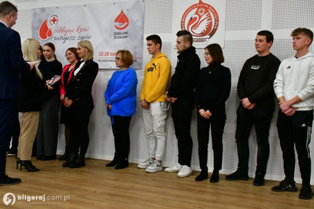 Podczas czwartkowej gali delegacja uczniów naszej szkoły wraz z opiekunem SK PCK otrzymała wyróżnienia za poświęcenie i dar, jaki przy każdej okazji ofiarowują drugiemu człowiekowi, podczas akcji Krwiodawstwa. Nasi uczniowie organizują raz do roku taką akcję w szkole, uczestniczą w podobnych akcjach w innych szkołach. Dzięki bezinteresownej odwadze i hojności, w postaci daru krwi, osoby potrzebujące otrzymują nadzieję, zdrowie i życie.