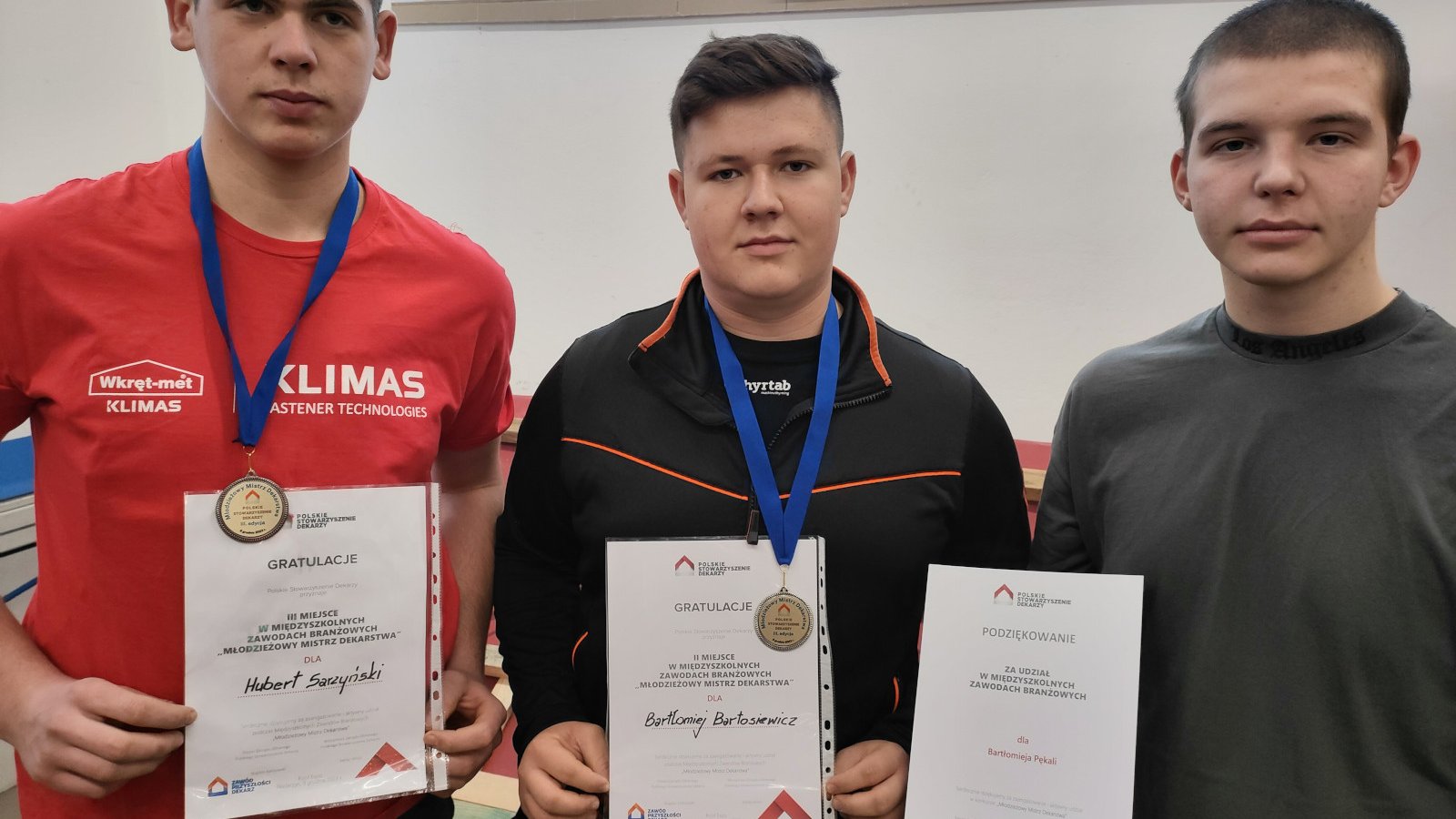 Zawodnicy wykonywali zadanie praktyczne w kategorii pokrycie dachu na rąbek. Po bardzo trudnej i wyczerpującej rywalizacji nasi uczniowie zostali pokonani tylko przez jednego zawodnika. Bartłomiej Bartosiewicz uplasował się na 2 pozycji zaś 3 miejsce zdobył Hubert Sarzyński, wyróżnienie otrzymał Bartłomiej Pękala. Wszyscy uczniowie uczęszczają do klasy o profilu dekarskim w naszej szkole.