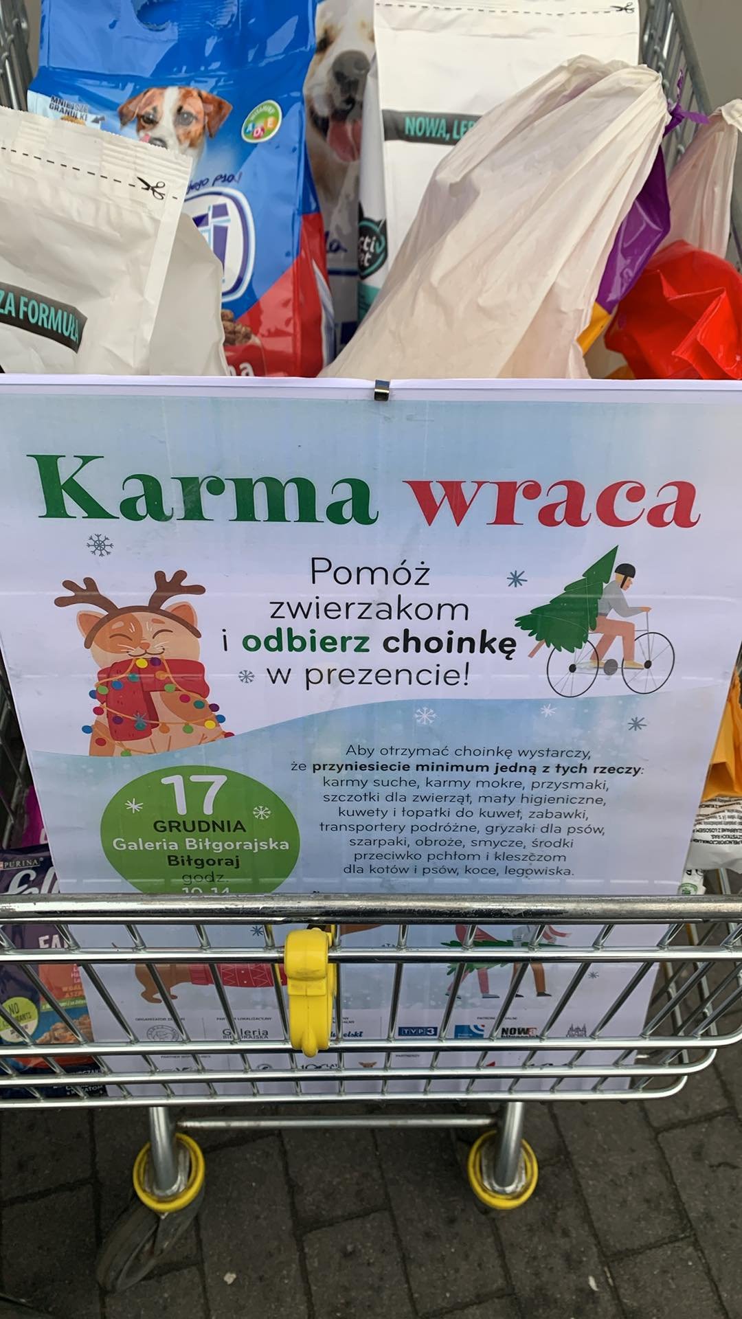 Była to akcja ogłoszona przez Kurier Lubelski, która polegała na zebraniu m.in. karmy, obroży, legowisk, żwirku, podkładów higienicznych, bud gąbkowych, smakołyków i wszelkich innych potrzebnych rzeczy dla zwierząt. Ta pomoc sprawi, że psiaki i kotki będą miały ciepłe i pełne miłości schronisko, a darczyńcy w zamian otrzymają choinkę, która będzie cieszyła oko w świąteczne poranki i wieczory.