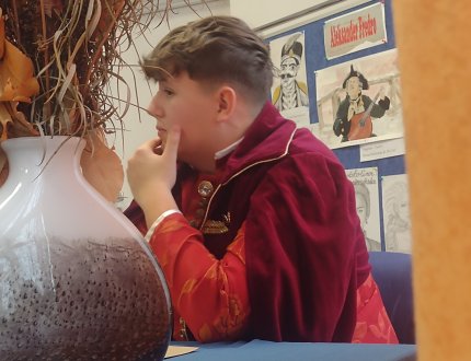 2023-12-12 Zakończenie roku poświęconego Aleksandrowi Fredrze w ZSBiO W piątek ósmego grudnia w bibliotece szkolnej klasy 2a LO i 2b LO brały udział w uroczystości poświęconej postaci i twórczości Aleksandra Fredry. Rok 2023 został bowiem poświęcony najwybitniejszemu polskiemu komediopisarzowi w 230. rocznicę jego urodzin. -