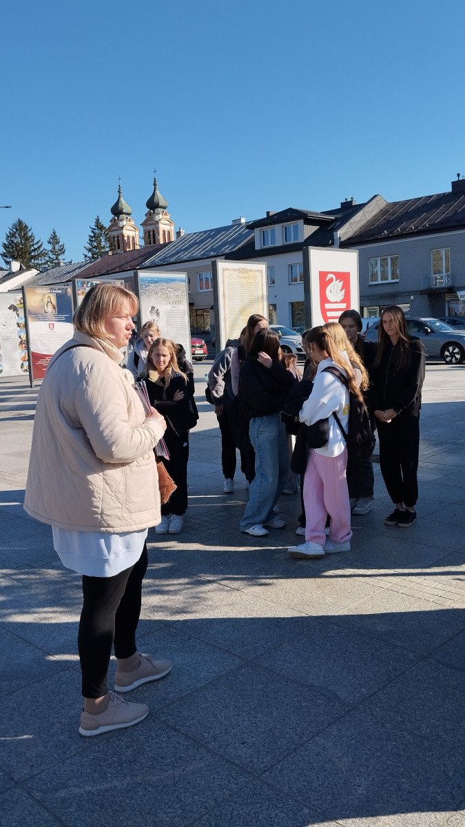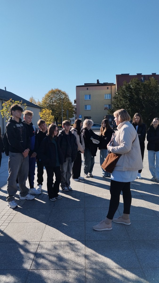 Uczniowie klasy 1 a LO odwiedzili Miejską i Powiatową Bibliotekę Publiczną w Biłgoraju. Spacer rozpoczęli od odwiedzenia czytelni, gdzie obejrzeli wystawę poświęconą patronowi biblioteki prof. J. Markiewiczowi. Następnie uczniowie udali się na biłgorajski rynek, gdzie Pani Natalia Czachorowska przybliżyła najważniejsze fakty z historii i tradycji Biłgoraja.