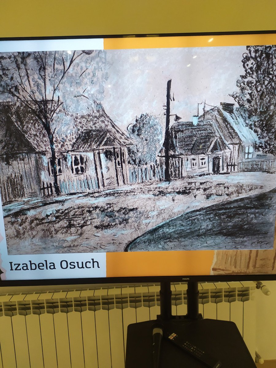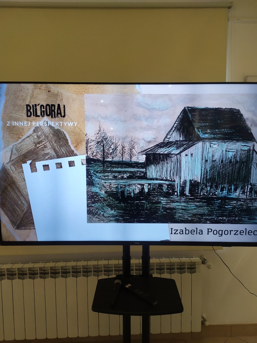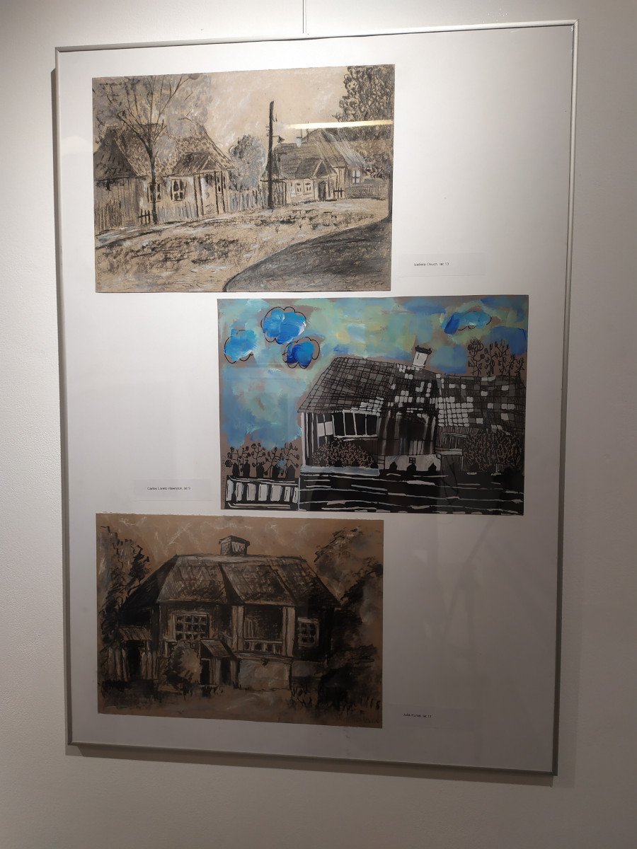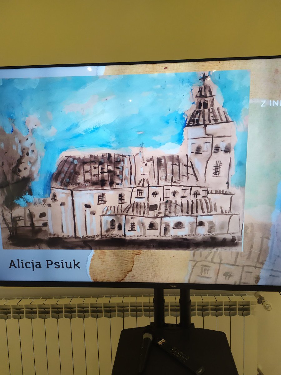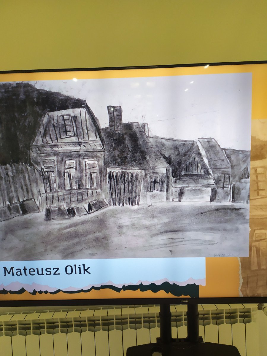 Uczniowie mieli okazje zobaczyć prace uczestników Pracowni Plastycznej Tęczowa Malarnia, działającej w Młodzieżowym Domu Kultury w Biłgoraju, pod kierunkiem Pani Anny Świcy. Byliśmy pod wrażeniem wykonanych prac, w których zobaczyliśmy dawny, nieznany młodemu pokoleniu Biłgoraj. Dzieła wykonane zostały technikami rysunkowymi - węglem, mazakiem, ołówkiem czy pastelą.