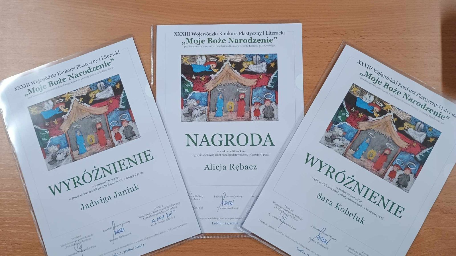 Trzy uczennice naszego liceum zostały laureatkami XXXIII Wojewódzkiego Konkursu Literackiego "Moje Boże Narodzenie", który odbył się pod honorowym patronatem Lubelskiego Kuratora Oświaty Tomasza Szabłowskiego.