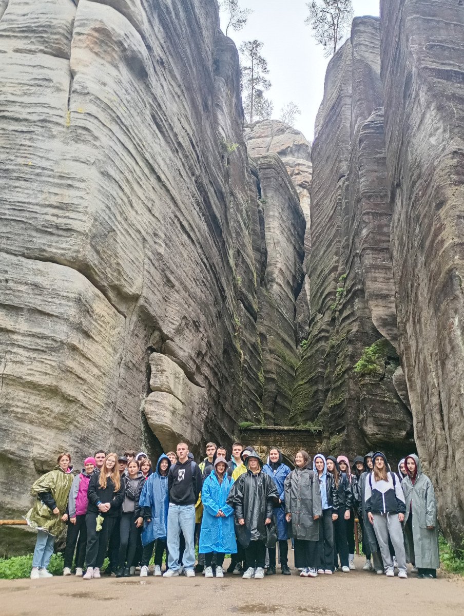 Trzeciego dnia wycieczki udaliśmy się do Skalnego Miasta w Adršpach. To niezwykłe miejsce, położone tuż za czeską granicą, zachwyciło nas fantastycznymi formacjami skalnymi, malowniczymi wąwozami i spokojem przyrody. Spacerując wyznaczonymi trasami, mogliśmy podziwiać naturalne cuda wyrzeźbione przez czas i naturę, a także poznać liczne legendy związane z tym rezerwatem. Był to idealny sposób na zakończenie wycieczki - w ciszy i otoczeniu przyrody.