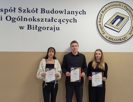 2025-01-15 Uczniowie ZSBiO w turnieju finałowym „Złotej Kielni” Z przyjemnością informujemy, że dwaj uczniowie naszej szkoły odnieśli sukces w eliminacjach okręgowych 53 Edycji Turnieju Budowlanego „Złota Kielnia” w zawodzie dekarz. Bartłomiej Szymanik zajął 2. miejsce, a Thomas Wrębiak 5. miejsce w Polsce! -
