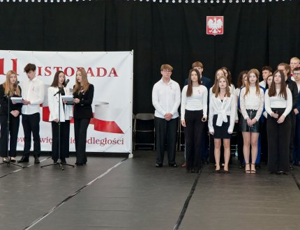 2024-11-08 Narodowe Święto Niepodległości W ramach obchodów uświetniających 106 rocznicę odzyskania przez Polskę niepodległości w dniu 8 listopada 2024 roku odbyła się w naszej szkole uroczysta akademia. -