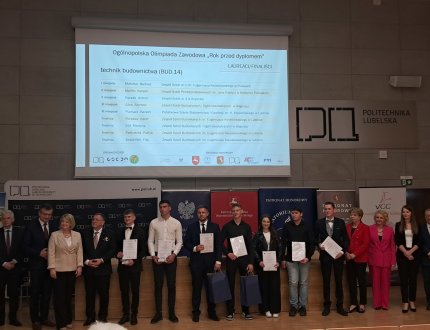 2025-05-26 Olimpiada zawodowa "Rok przed dyplomem" 10 kwietnia 2025r. w Lublinie odbył się Ogólnopolski etap Olimpiady Zawodowej „Rok przed dyplomem”, w kwalifikacji BUD.14 - Organizacja i kontrola robót budowlanych oraz sporządzanie kosztorysów, „Budowlankę” reprezentowali uczniowie klasy 4A Technikum Budowlanego Martyna Łoś i Szymon Góra.