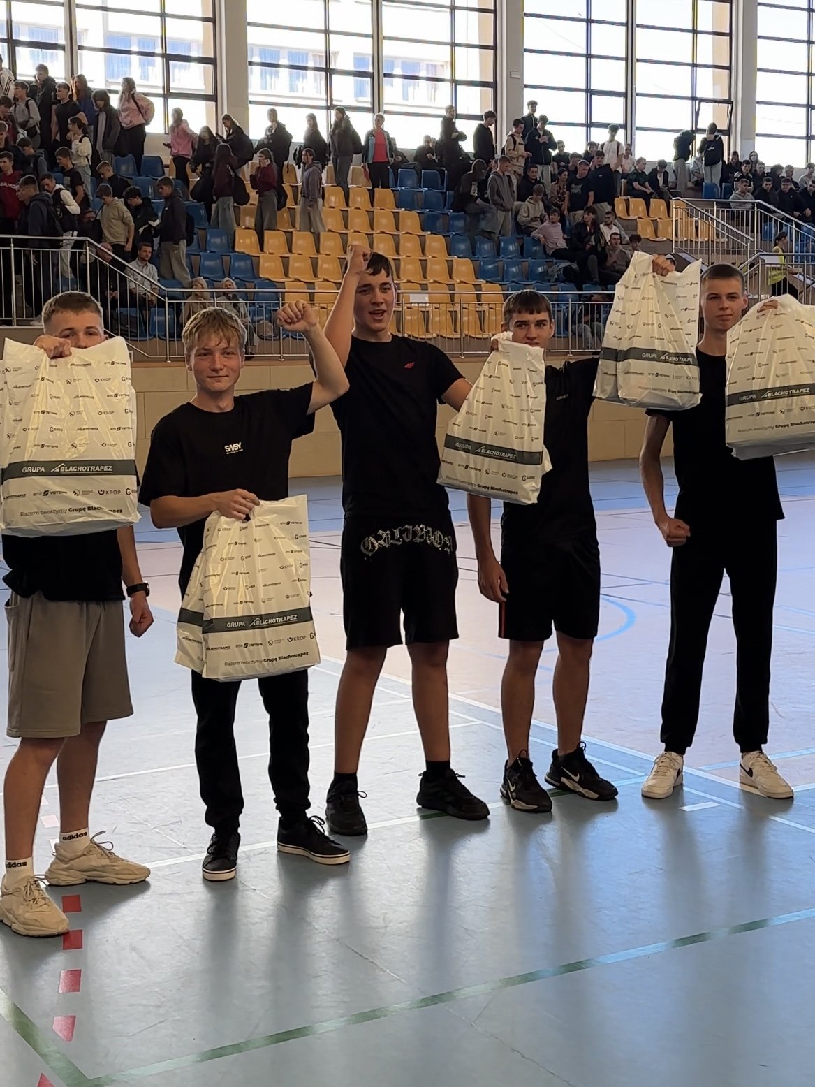 Uroczystość zakończyła się wręczeniem nagród. Firma Blachotrapez, z którą współpracuje nasza szkoła przekazała upominki, za co bardzo serdecznie dziękujemy. Dzień Budowlanych stał się nie tylko okazją do integracji uczniów i nauczycieli, ale także świetną promocją zawodów budowlanych w atmosferze sportowej rywalizacji i dobrej zabawy.