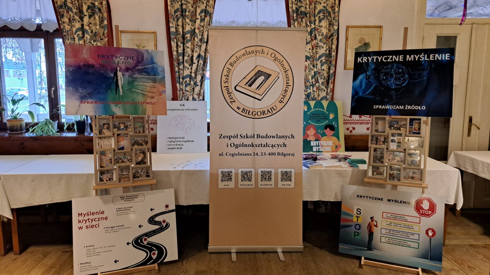 - 8 plakatów na temat Krytycznego Myślenia zaprojektowanych przez nas w Canvie i wydrukowanych jako stała dekoracja edukacyjna dla całej społeczności szkolnej,