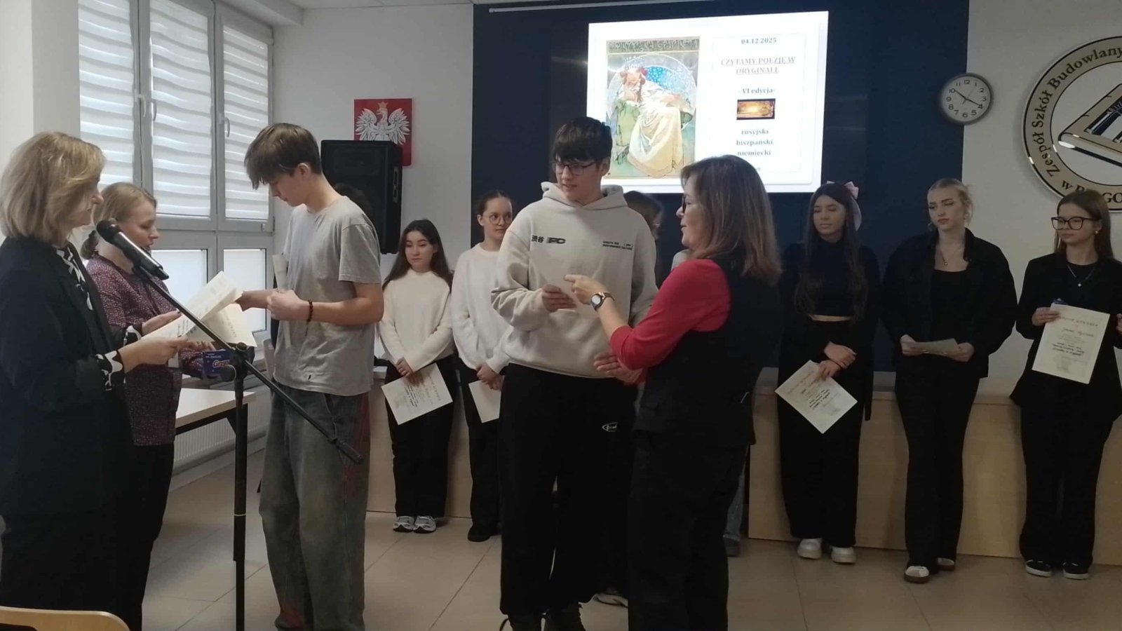4 grudnia 2025 r. w naszej szkole odbyła się VI edycja wyjątkowego wydarzenia „Czytamy poezję w oryginale” poświęcona pięknu i różnorodności literatury w trzech językach: hiszpańskim, niemieckim i rosyjskim. Podczas spotkania 17 uczniów zaprezentowało utwory najwybitniejszych poetów. Wśród najczęściej wybieranych autorów znaleźli się: Pablo Neruda, Friedrich Schiller oraz Aleksander Puszkin.