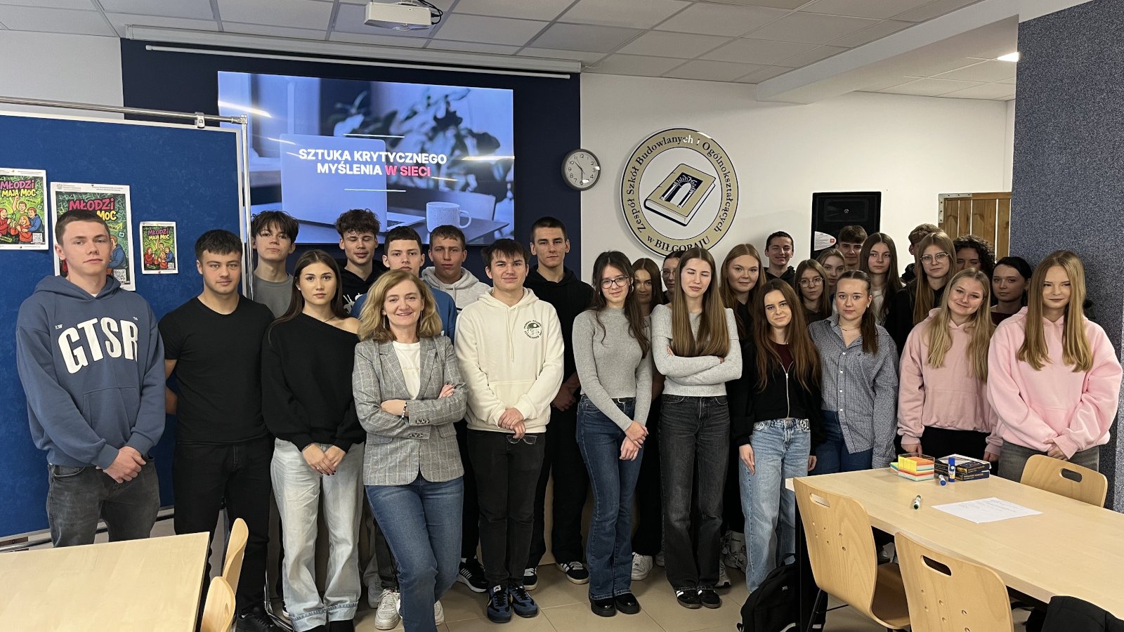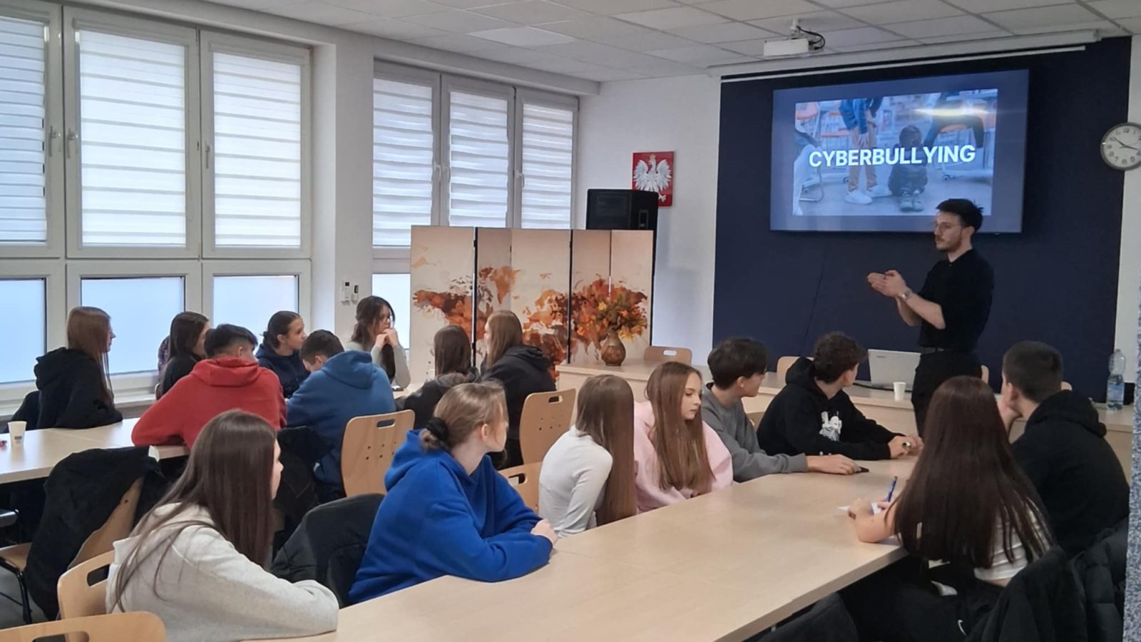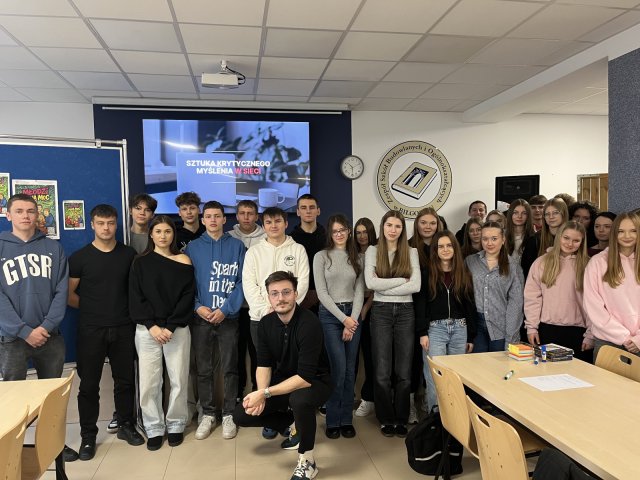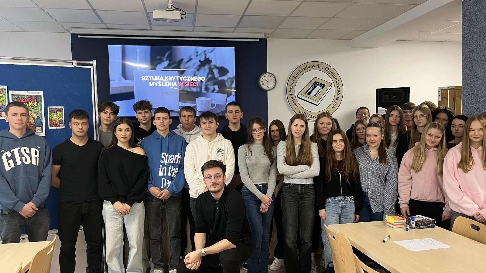 Ważnym etapem tej inicjatywy były warsztaty z psychologiem Jakubem Buczko, które odbyły się 17 listopada pod hasłem „Sztuka krytycznego myślenia w sieci”. Podczas spotkania zostały omówione takie zjawiska jak: scam, cyberbulling i grooming. Młodzież poznała najczęstsze błędy poznawcze wykorzystywane w marketingu i przestrzeni internetowej. Dzięki praktycznym ćwiczeniom uczniowie mogli od razu zastosować zdobytą wiedzę w krytycznej ocenie sytuacji, ucząc się świadomego i odpowiedzialnego korzystania z sieci.