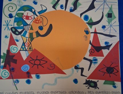 2025-10-20 Wystawa "Maluję jak Joan Miró" Na lekcjach języka hiszpańskiego poznaliśmy sylwetkę słynnego katalońskiego artysty Joana Miró, zgłębialiśmy jego niezwykłą twórczość i przy okazji uczyliśmy się nowego słownictwa. Opisywaliśmy jego obrazy po hiszpańsku oraz czytaliśmy krótkie opisy i na ich podstawie malowaliśmy. Tak oto język i sztuka połączyły siły! -