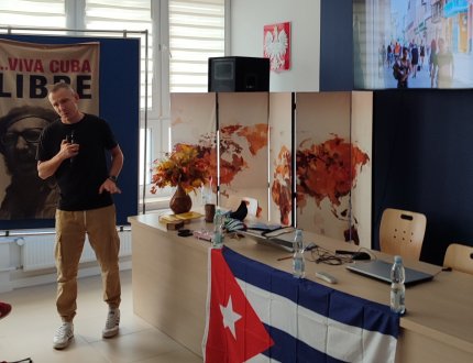 2025-10-24 Spotkania z Podróżnikiem W dniach 21 i 22 października 2025 roku w świetlicy internatu odbyły się 4 sesje Spotkania z Podróżnikiem - p.Grzegorzem Chachurą - z grupy Trzask. Tematem przewodnim była ostatnia wyprawa na Kubę. Zainteresowanie klas przerosło nasze oczekiwania! W sumie udział wzięło 12 klas z LO i TB; przede wszystkim z rozszerzoną geografią. -