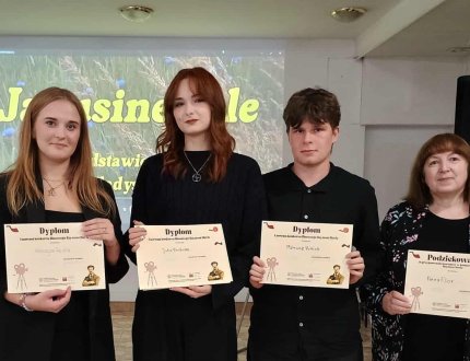 2025-10-08 „Jagusine żale” – film naszych maturzystów nagrodzony w konkursie „Reymont Movie” 2 października odbyło się w Lublinie podsumowanie projektu „Reymont Movie”. Podczas spotkania pani Joanna Misiarz, przedstawicielka CDW Fundacji Szczęśliwe Dzieciństwo, zaprezentowała zgromadzonym filmy konkursowe, które zdobyły identyczną, maksymalną liczbę punktów przyznanych przez jurorów, co oznacza, że „Jagusine żale” (oraz dwa inne filmy) otrzymały 1 miejsce. -