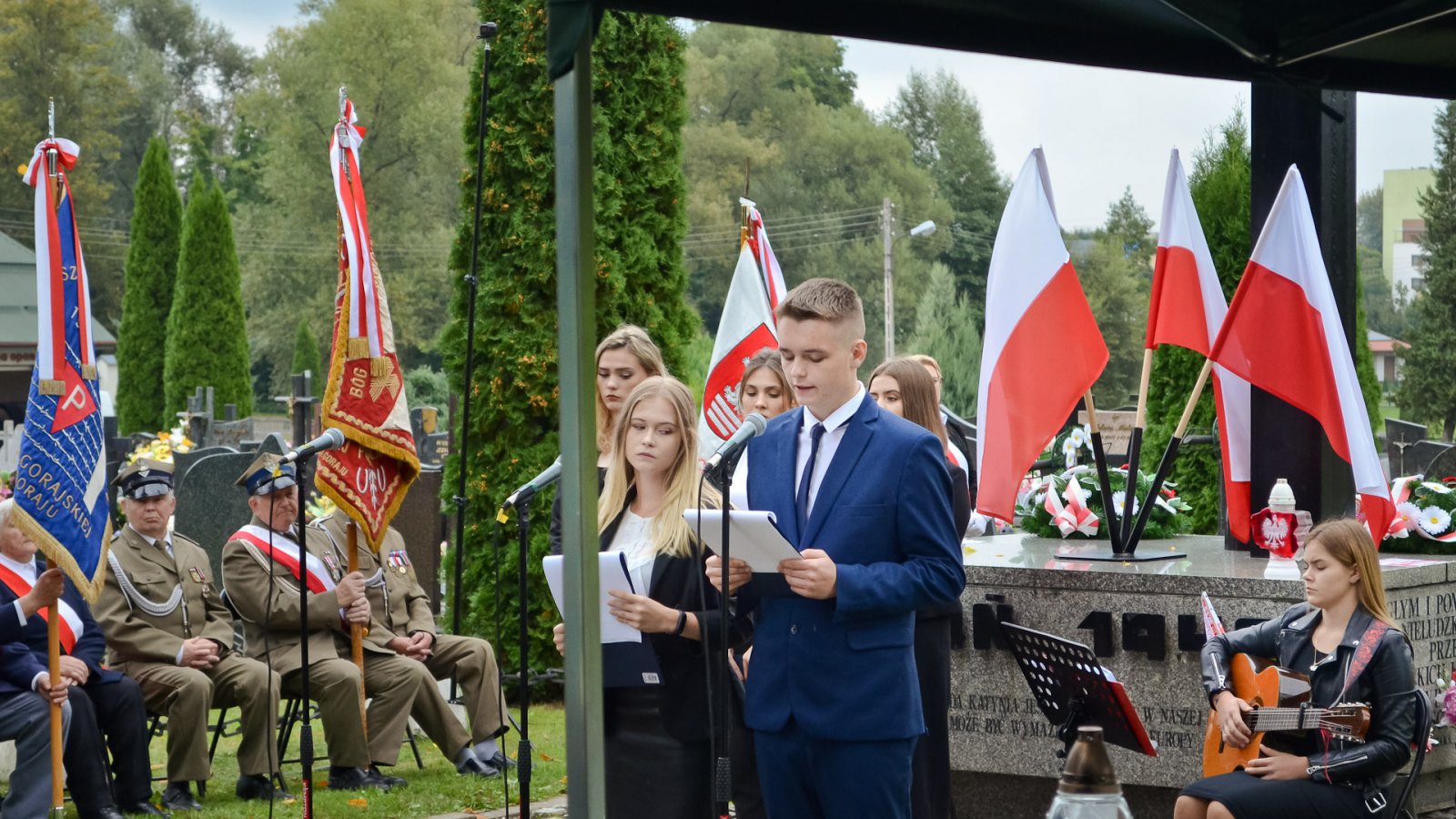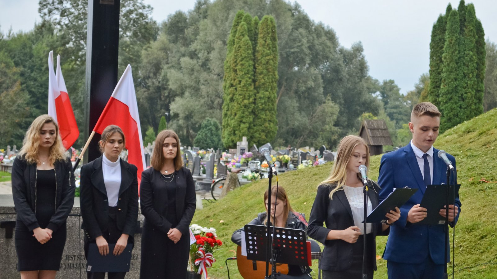 Zanim delegacje złożyły wieńce i kwiaty, odbyła się część artystyczna w wykonaniu młodzieży naszej szkoły. Wystąpili:Julia Wurszt [gitara], Edyta Kruszyńska [śpiew], Daria Podpora [śpiew], Weronika Skibińska [recytacja], Kamila Kaziród oraz Konrad Blicharz [rys historyczny].