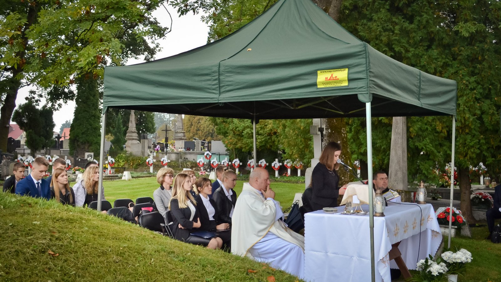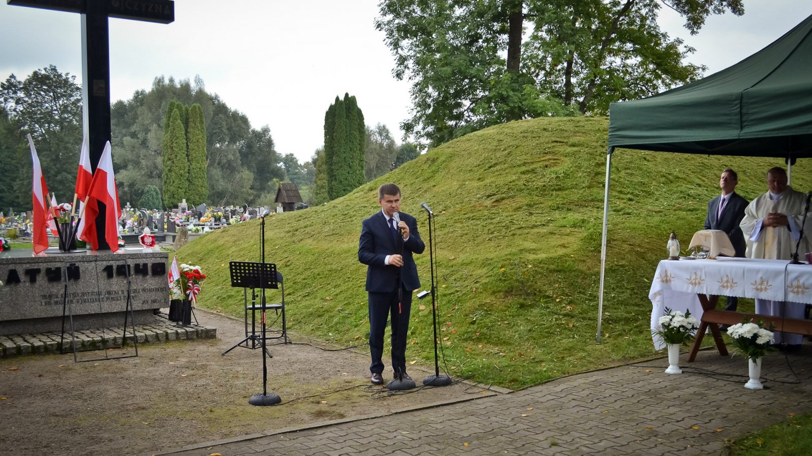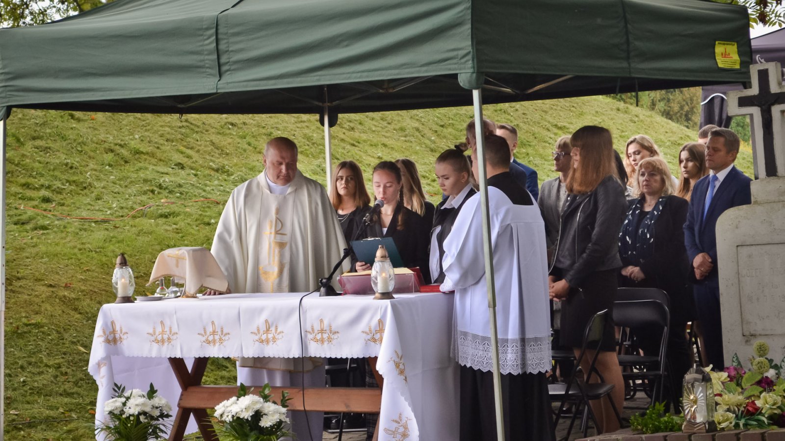 Po powitaniu zgromadzonych przez pana dyrektora Stanisława Sitarza, podczas Mszy św. modlono się za ofiary II wojny światowej. Do dzisiejszej rocznicy odniósł się też w swoim przemówieniu starosta, pan Andrzej Szarlip.
