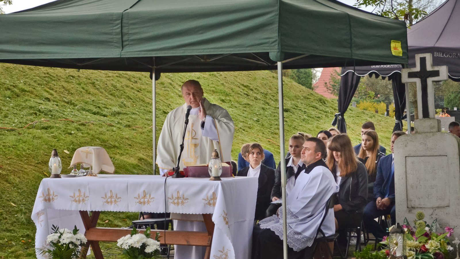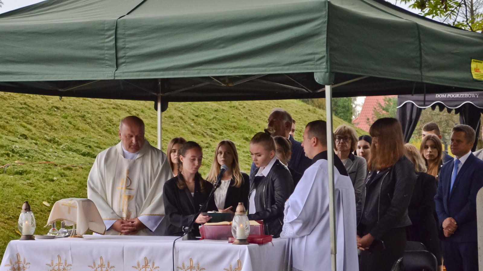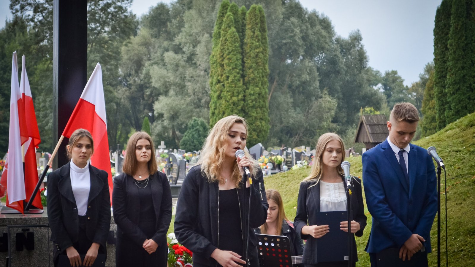 Po powitaniu zgromadzonych przez pana dyrektora Stanisława Sitarza, podczas Mszy św. modlono się za ofiary II wojny światowej. Do dzisiejszej rocznicy odniósł się też w swoim przemówieniu starosta, pan Andrzej Szarlip.