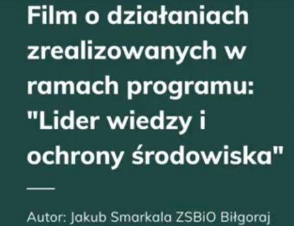 2021-10-07 Udział w programie "Lider wiedzy i ochrony środowiska" Zapraszamy do obejrzenia filmu o działaniach naszego ucznia klasy II C LO o profilu medycznym Jakuba Smarkali w ramach udziału w programie: "Lider wiedzy i ochrony środowiska". -