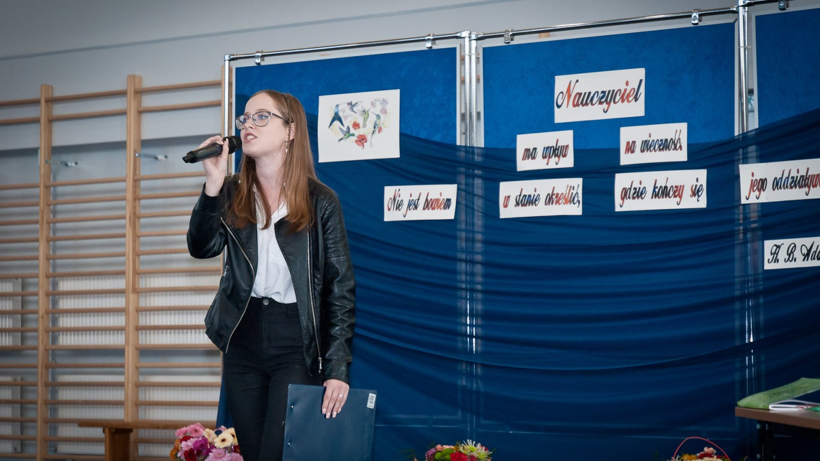 W hali sportowej zebrali się wszyscy uczniowie, dyrekcja, nauczyciele oraz zaproszeni goście. Życzenia wszystkim nauczycielom złożył dyrektor pan Stanisław Sitarz, starosta biłgorajski pan Andrzej Szarlip oraz przewodniczący Samorządu Uczniowskiego Bartłomiej Kaczor. Następnie wszyscy zebrani obejrzeli część artystyczną przygotowaną przez uczniów i nauczycieli.
