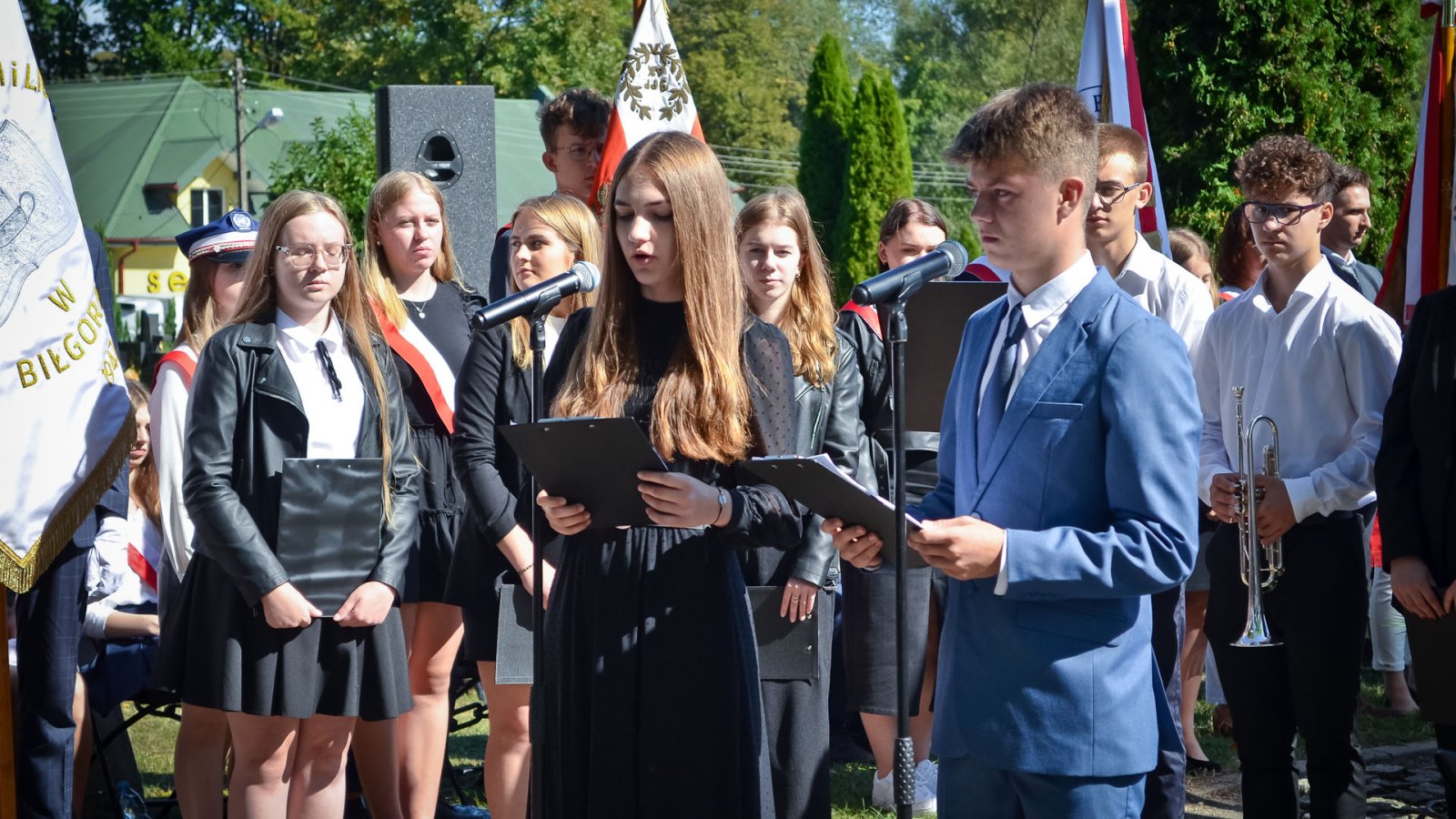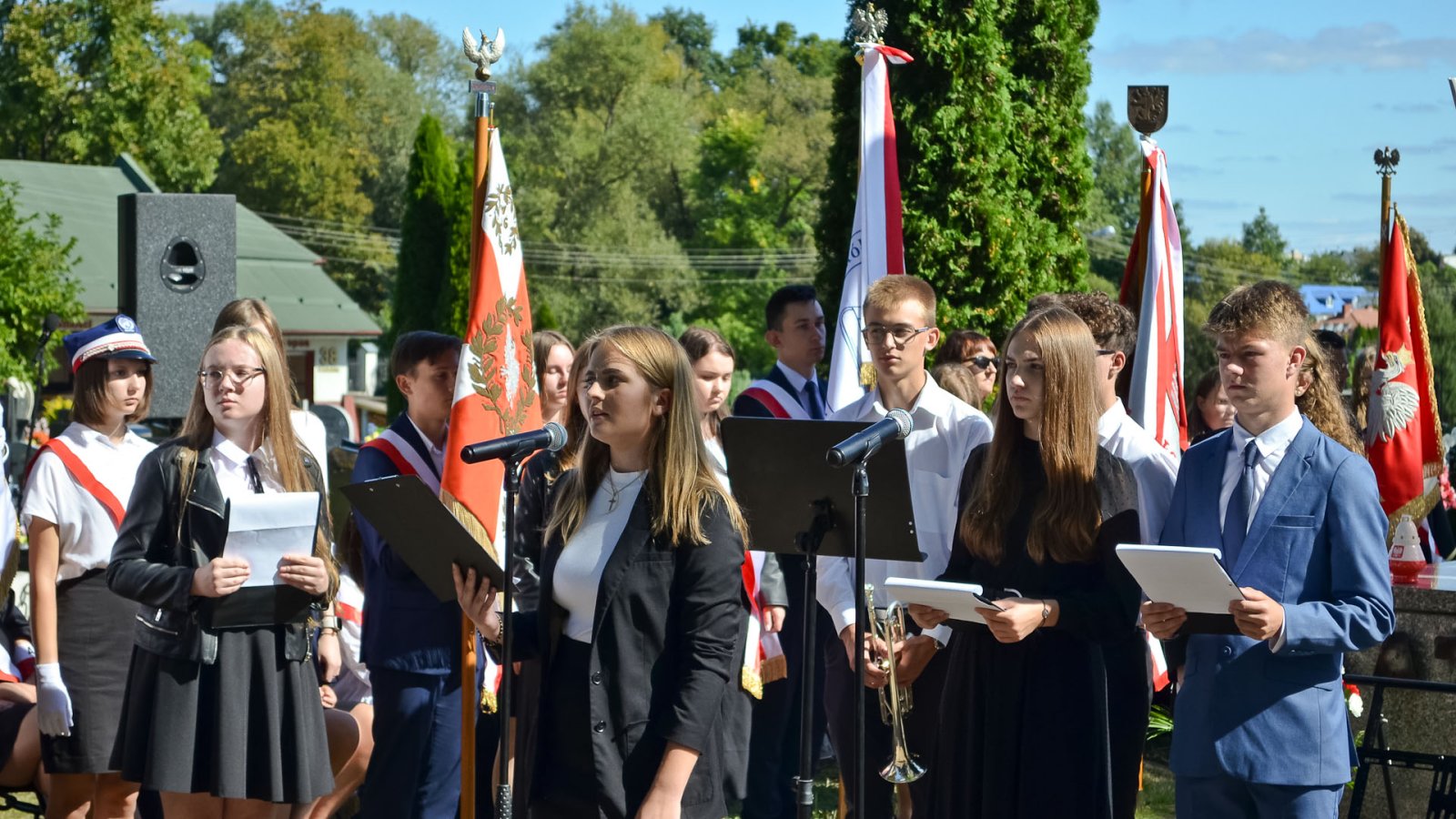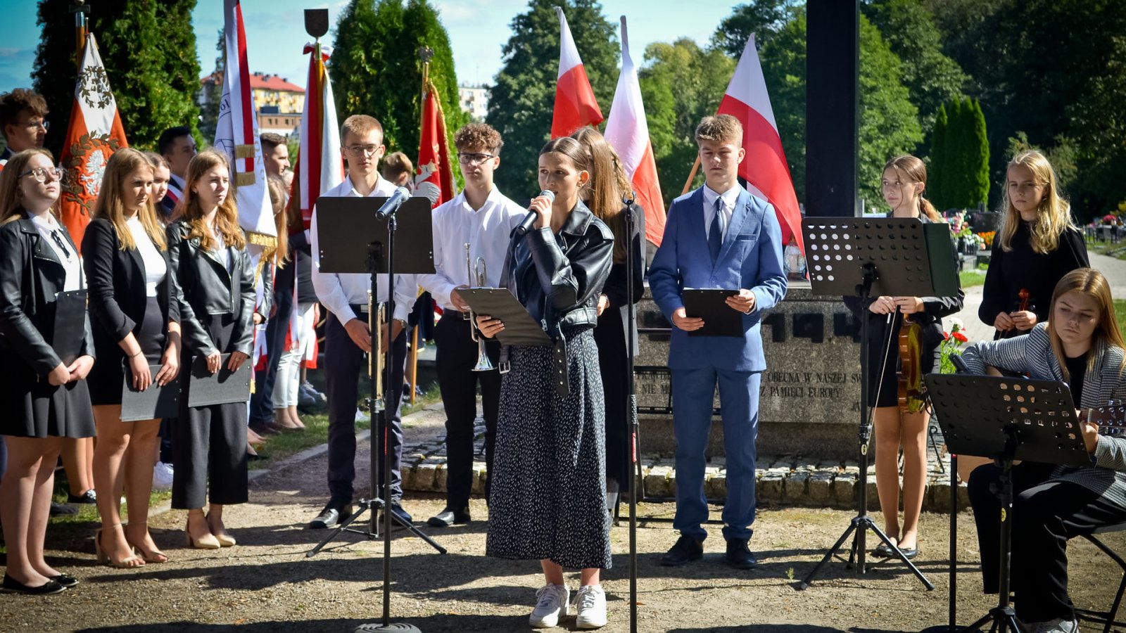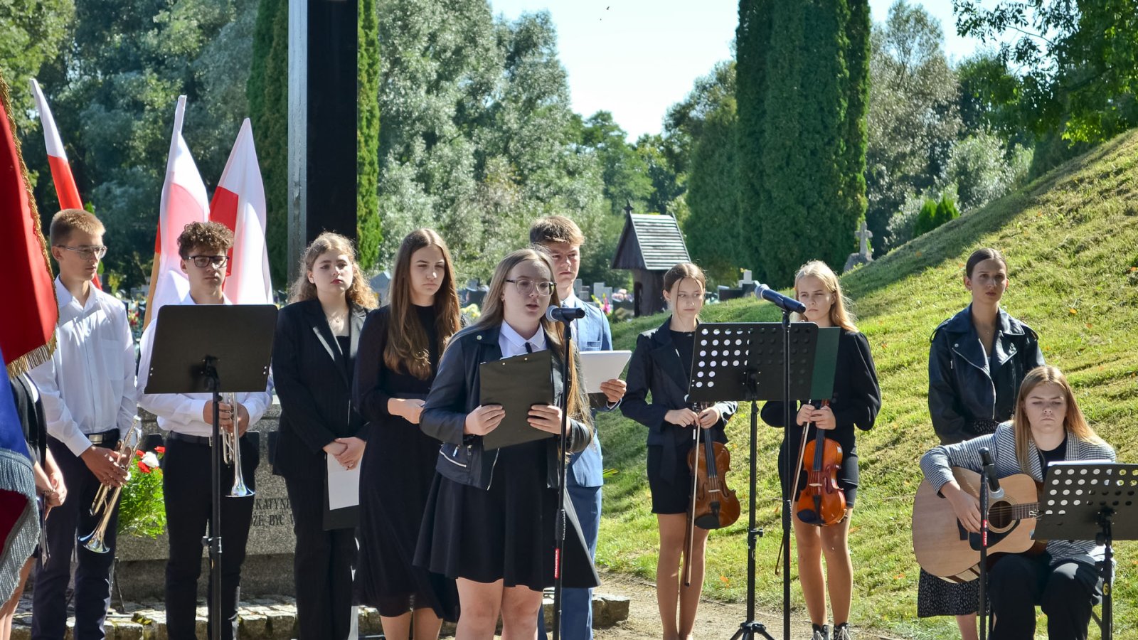 Wystąpili: Wiktoria Małek 1cLO [skrzypce], Aleksandra Łosiewicz 1dLO [skrzypce], Katarzyna Rączka 2cLO [śpiew], Maja Czekirda 2dLO [recytacja], Magdalena Klimek 2dLO [recytacja], Franciszek Gnyp 2dLO [recytacja, trąbka], Wiktoria Pawlos 2fLO [śpiew], Magdalena Radomska 2fLO [narracja historyczna], Robert Bodek 3aLO [narracja historyczna], Sylwia Żółw 3bLO [śpiew], Julia Wurszt 3dLO [gitara], Antoni Cios 1bTB [trąbka].
