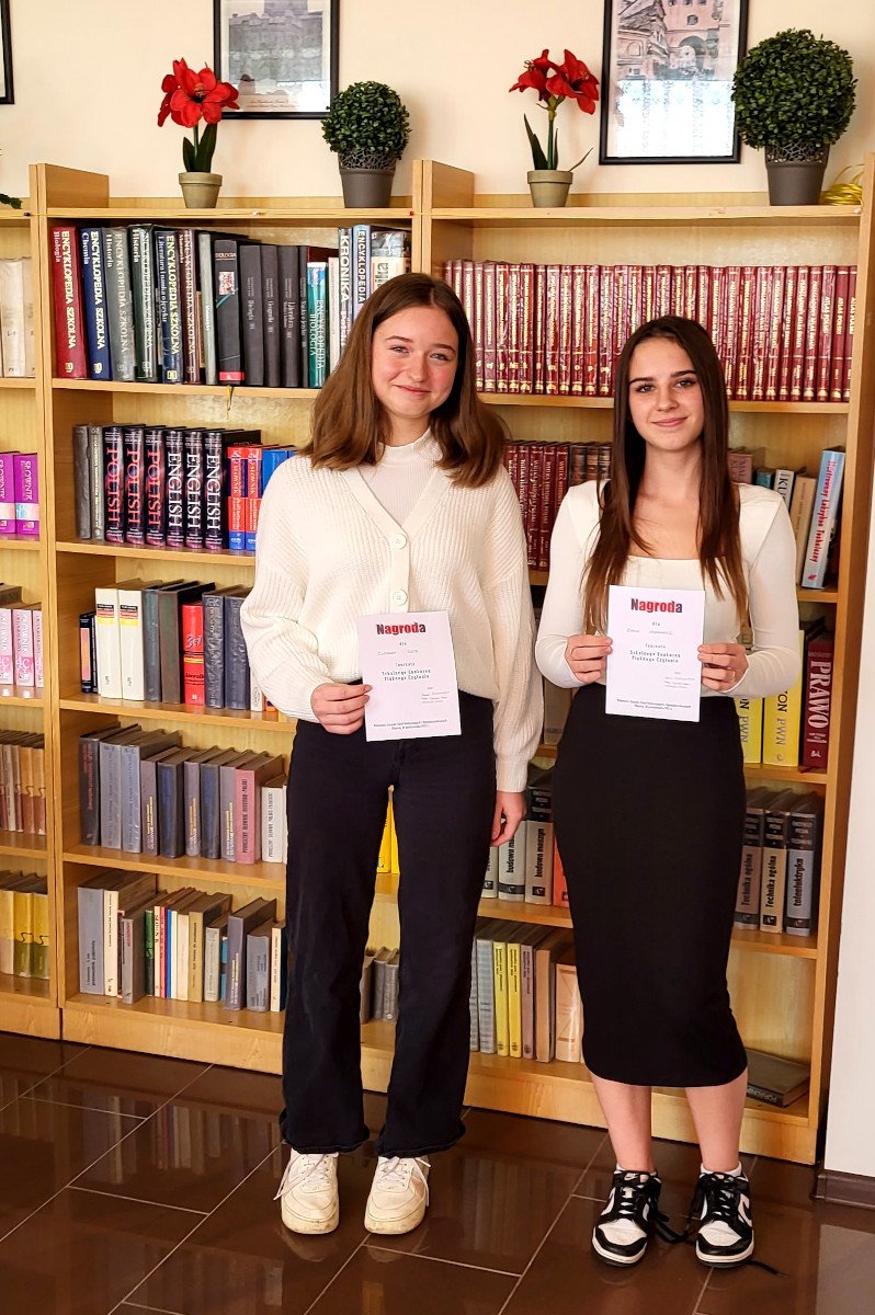 Jury w składzie: pani dyrektor Anna Kraczowska, pani Dorota Szymanik-Duras i pani Katarzyna Kowalska-Bazan tytuł laureata przyznało Zuzannie Cios z klasy Ia LO i Emilii Oszmaniec z klasy Ib LO. Wyróżnione uczennice będą reprezentować naszą szkołę na Powiatowym Konkursie Pięknego Czytania, który odbędzie się 30 listopada 2023 r. w bibliotece szkolnej.