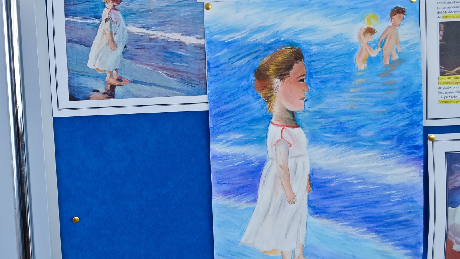 Jako dekoracje można było zobaczyć trzy wystawy prac naszych uczniów: ilustracje do rosyjskich bajek i baśni, ilustracje do bajek braci Grimm oraz prace inspirowane malarstwem hiszpańskiego impresjonisty Sorolli.