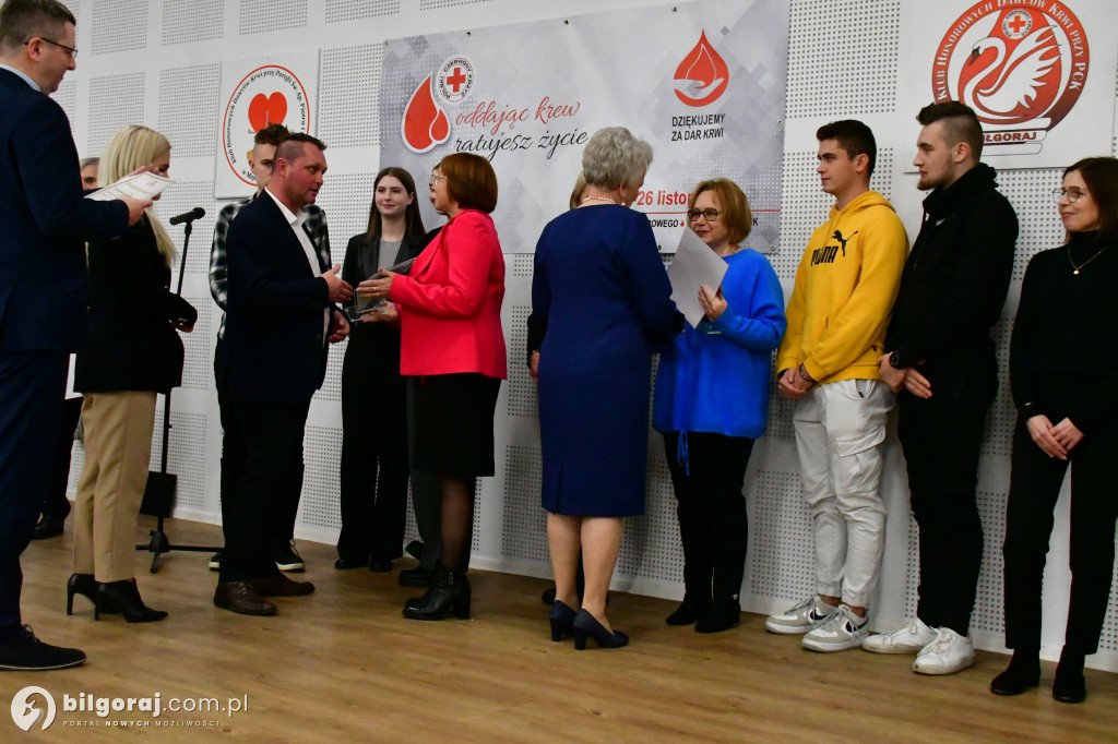 Podczas czwartkowej gali delegacja uczniów naszej szkoły wraz z opiekunem SK PCK otrzymała wyróżnienia za poświęcenie i dar, jaki przy każdej okazji ofiarowują drugiemu człowiekowi, podczas akcji Krwiodawstwa. Nasi uczniowie organizują raz do roku taką akcję w szkole, uczestniczą w podobnych akcjach w innych szkołach. Dzięki bezinteresownej odwadze i hojności, w postaci daru krwi, osoby potrzebujące otrzymują nadzieję, zdrowie i życie.