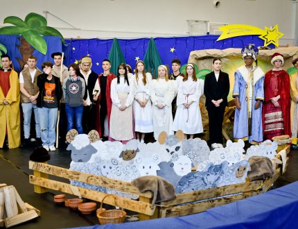 2023-12-23 Jasełka Bożonarodzeniowe Jasełka to widowisko o Bożym Narodzeniu, które od wieków wpisane jest w polską tradycję oraz corocznie jest wystawiane w naszej szkole. Tegoroczne „Jasełka na wesoło” w naszej szkole zostały przygotowane przez ponad czterdziestu uczniów pod opieką katechety pana Mirosława Kity.