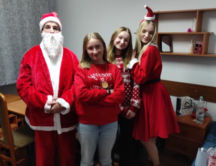 2023-12-06 Mikołajki Jak nakazuje tradycja 6 grudnia, wieczorową porą, św. Mikołaj odwiedził nasz internat. -