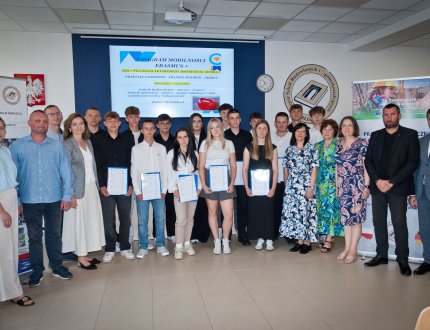 2025-06-24 Projekt Mobilności Programu Erasmus + W dniu 18 czerwca 2025 roku zorganizowaliśmy uroczyste spotkanie podsumowujące działania projektowe, podczas którego uczestnicy praktyk zaprezentowali swoje doświadczenia i refleksje z pobytu w Niemczech: przedstawili prezentację multimedialną, film i zdjęcia ze stażu i pobytu w Berlinie, Poczdamie, Frankfurcie nad Odrą i Tropikalnej Wyspie. -