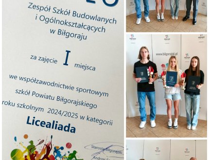2025-06-25 Budowlanka wygrywa Licealiadę Miło nam poinformować, że nasza szkoła wygrała współzawodnictwo sportowe szkół powiatu biłgorajskiego za rok szkolny 2024/2025, a nasi uczniowie indywidualnie zajęli miejsca w dziesiątce najlepszych sportowców. -