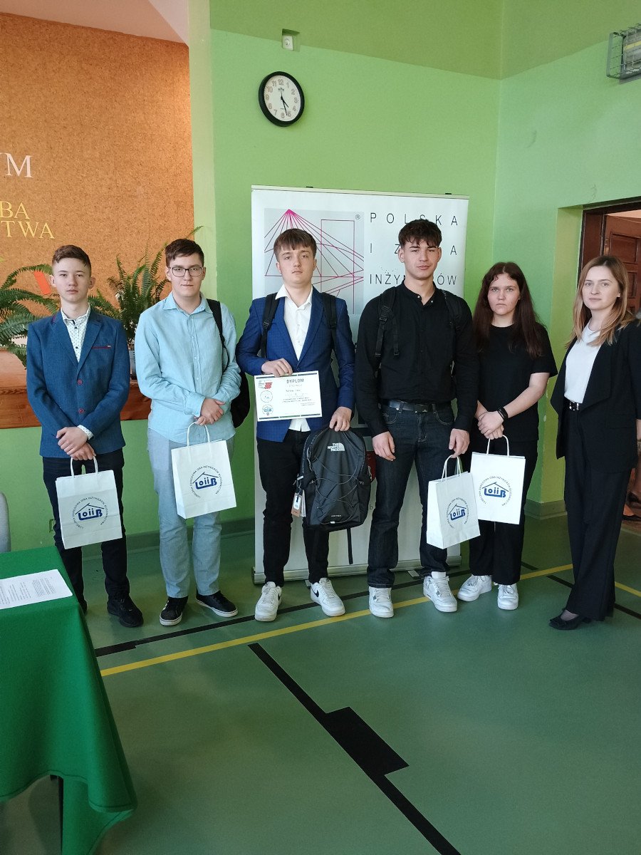 W dniu 12.03.2025 r. uczniowie naszej szkoły: Patrycja Kaproń, Paweł Paczwa, Kamil Szpyt, Bartosz Czok i Mikołaj Kominek, wzięli udział w etapie wojewódzkim IV Ogólnopolskiej Olimpiady Wiedzy o Procesie Inwestycyjno - Budowlanym, który odbył się w Lublinie.