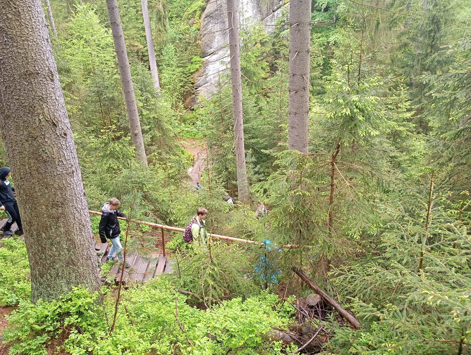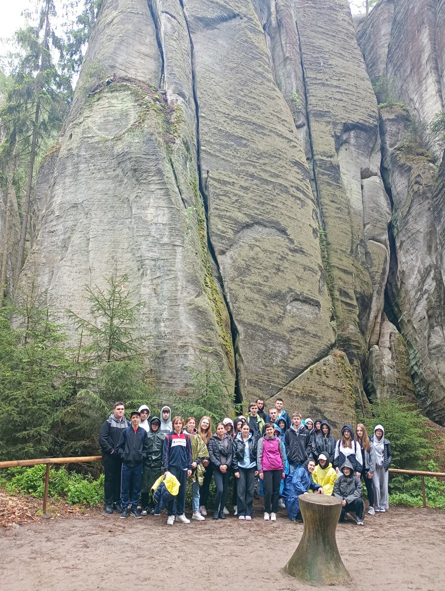 Trzeciego dnia wycieczki udaliśmy się do Skalnego Miasta w Adršpach. To niezwykłe miejsce, położone tuż za czeską granicą, zachwyciło nas fantastycznymi formacjami skalnymi, malowniczymi wąwozami i spokojem przyrody. Spacerując wyznaczonymi trasami, mogliśmy podziwiać naturalne cuda wyrzeźbione przez czas i naturę, a także poznać liczne legendy związane z tym rezerwatem. Był to idealny sposób na zakończenie wycieczki - w ciszy i otoczeniu przyrody.