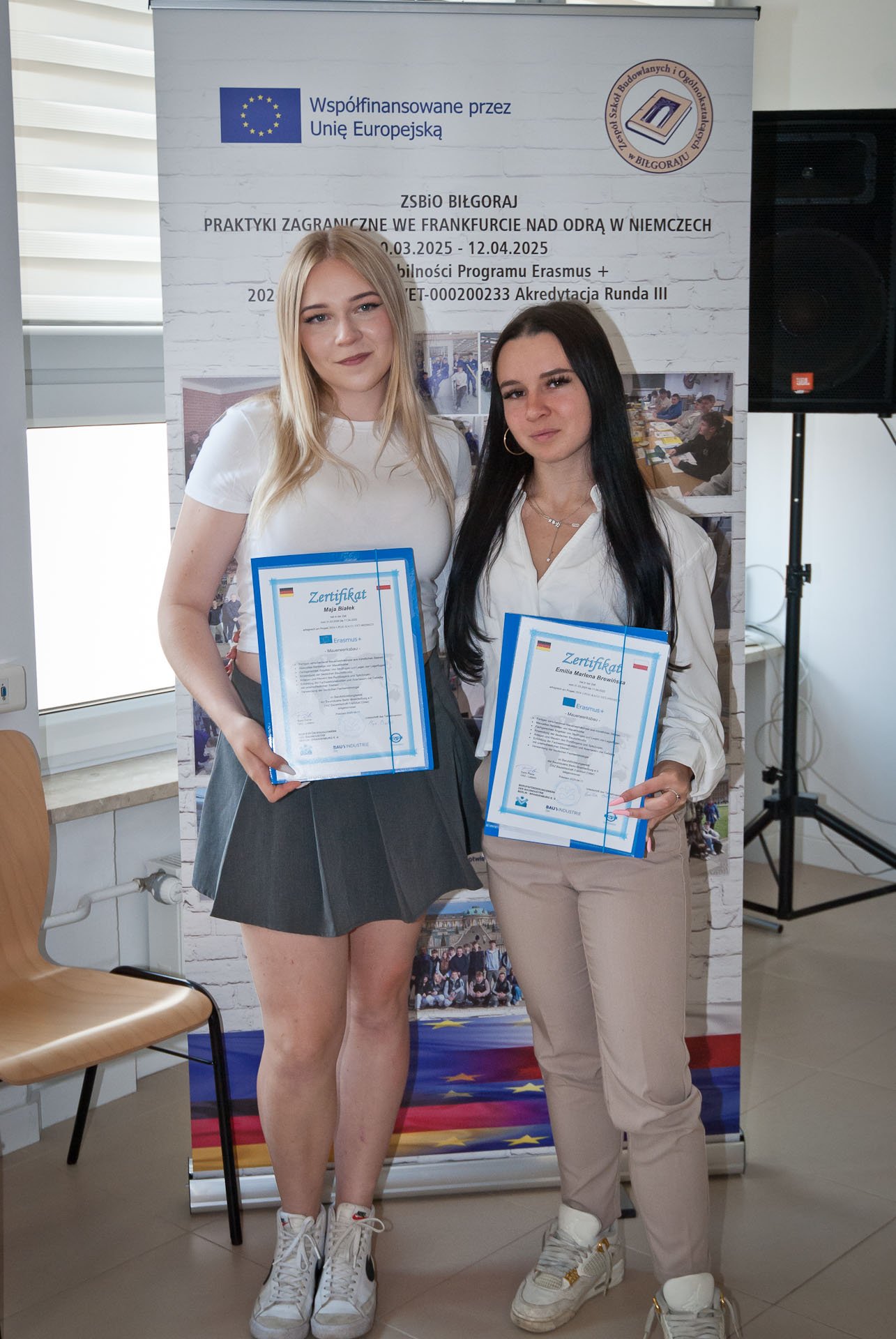 Po zakończonych praktykach wszyscy uczestnicy otrzymali Certyfikaty potwierdzające nabycie kompetencji zawodowych oraz umiejętności posługiwania się specjalistycznym słownictwem technicznym w języku niemieckim.