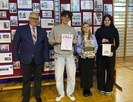 2024-12-15 XXXV Powiatowy Konkurs Wiedzy o Ziemi Biłgorajskiej 11 grudnia odbył się jubileuszowy XXXV Powiatowy Konkurs Wiedzy o Ziemi Biłgorajskiej, w którym brały udział dwie 3 osobowe drużyny z ZSBIO w Biłgoraju. -