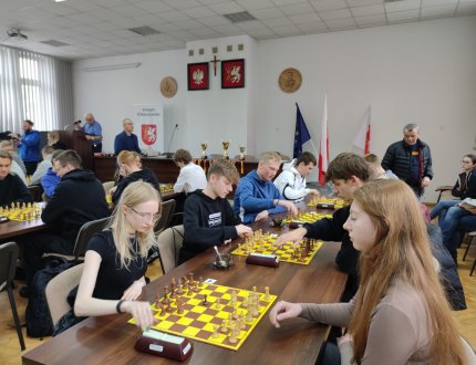 2024-12-15 Udany start szachistów! 11 grudnia 2024 r. w gmachu Starostwa Powiatowego w Tomaszowie Lubelskim rozegrano Wojewódzką Licealiadę w szachach drużynowych. Nasz powiat reprezentowała mistrzowska drużyna ZSBiO w składzie: Mateusz Kozłowski, Kacper Czerniak, Adam Stawarski, Iga Łaba. -