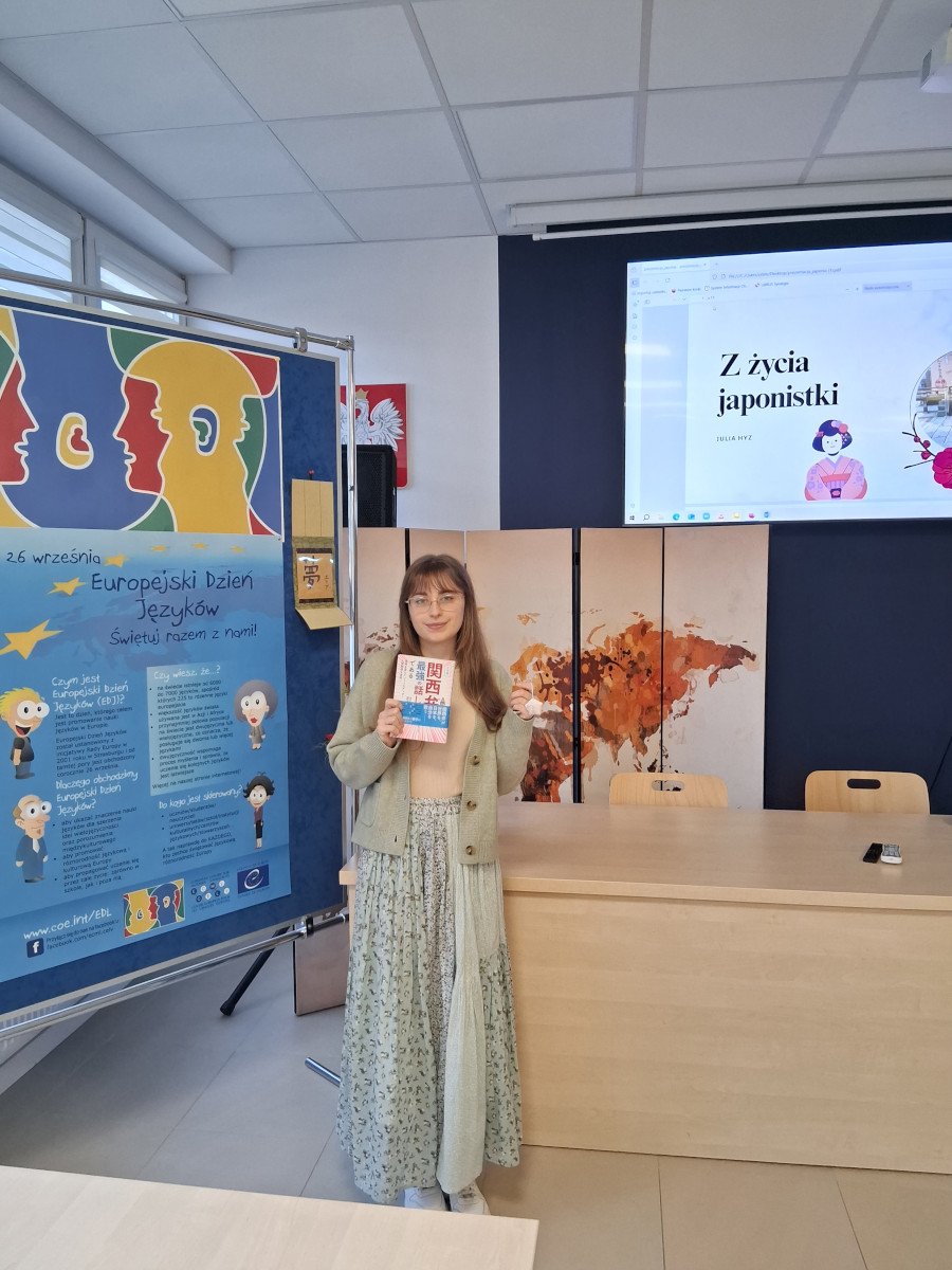 26 września nasza szkoła przyłączyła się do obchodów Europejskiego Dnia Języków Obcych. Tego dnia rozwiązywaliśmy interesujące quizy językowe oraz rozmawialiśmy na lekcjach o wielojęzyczności, odkrywając, że różnorodność językowa może wpłynąć na nasze życie i jakość naszych kontaktów z ludźmi. Wyjątkowym wydarzeniem było spotkanie z absolwentką naszej szkoły Julią Hyz, studentką japonistyki na Uniwersytecie Mikołaja Kopernika w Toruniu.