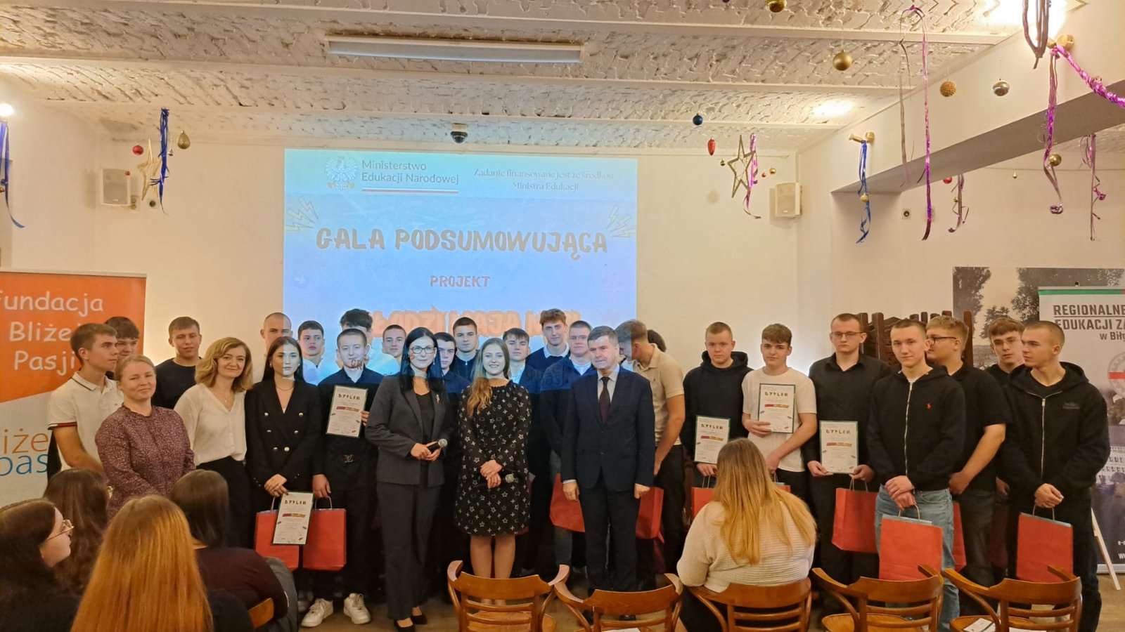 10 grudnia 2025 roku mieliśmy zaszczyt uczestniczyć w uroczystej gali podsumowującej projekt „Młodzi mają moc”, realizowany od września do grudnia 2025 we współpracy z Fundacją Bliżej Pasji. Cała inicjatywa została przeprowadzona w ramach rządowego programu Młodzi Obywatele, prowadzonego i finansowanego przez Ministerstwo Edukacji Narodowej, której celem było kształtowanie świadomych postaw obywatelskich i zmotywowanie młodzieży do aktywności na rzecz własnych społeczności.