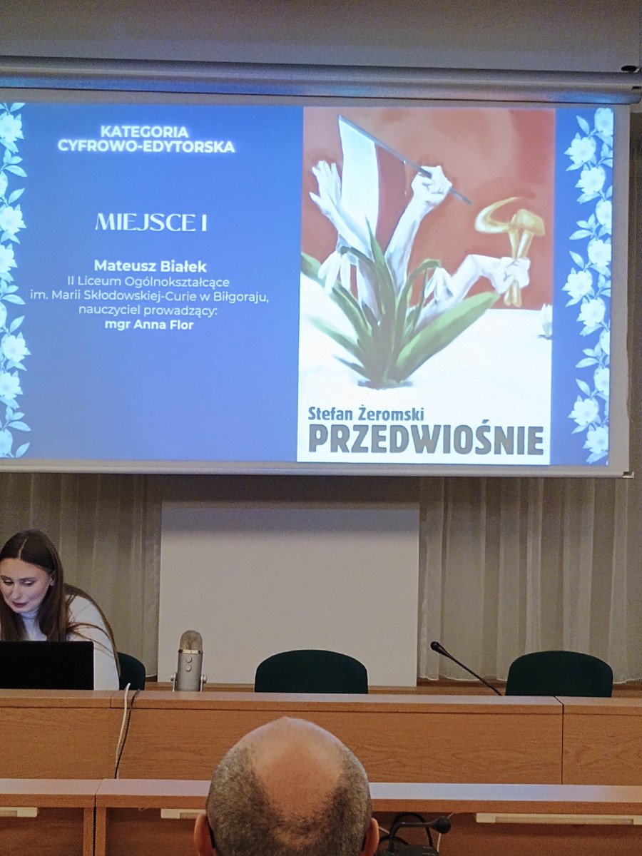 Do komisji konkursowej napłynęło 65 prac w dwóch kategoriach tematycznych: literackiej (25) i cyfrowo-edytorskiej (40). Wśród zwycięzców znalazł się uczeń kl. 4a naszego liceum Mateusz Białek, autor dwóch nagrodzonych prac w obu kategoriach.